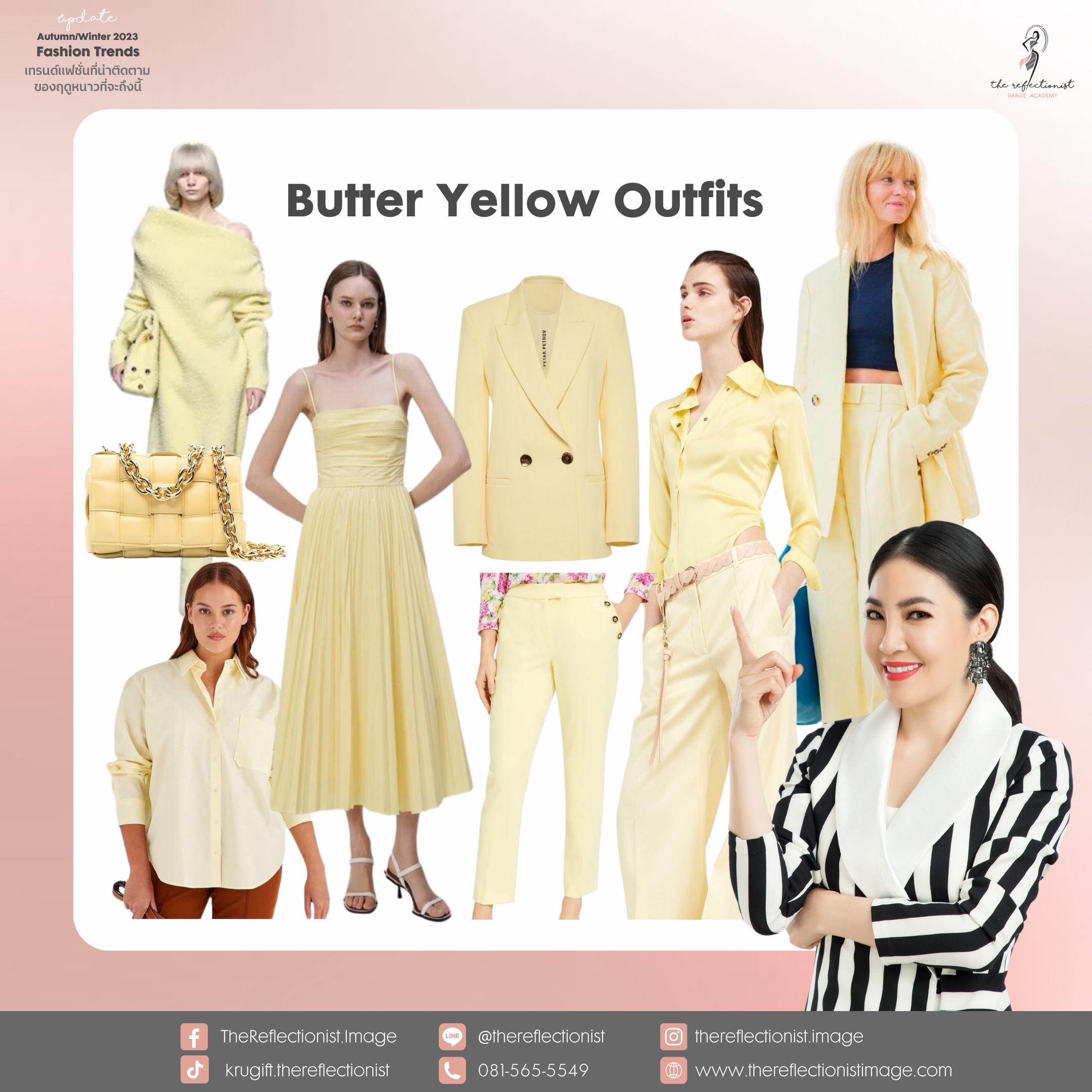 เมื่อมีสีสันที่ร้อนแรงแล้ว ก็ต้องมีสีที่ Soft แต่สนุกตามมาด้วยเช่นกัน สำหรับสีแบบอ่อนๆไม่แรงมากที่เหมาะกับ Autumn/Winter นี้ก็คือสีเหลืองแบบที่เป็นสีบัตเตอร์นั่นเองค่ะ เป็นสีเหลืองที่ให้ความรู้สึกสดใส และน่าสนุกไปกับเทรนด์แฟชั่นช่วงปลายปีนี้มากๆค่ะ