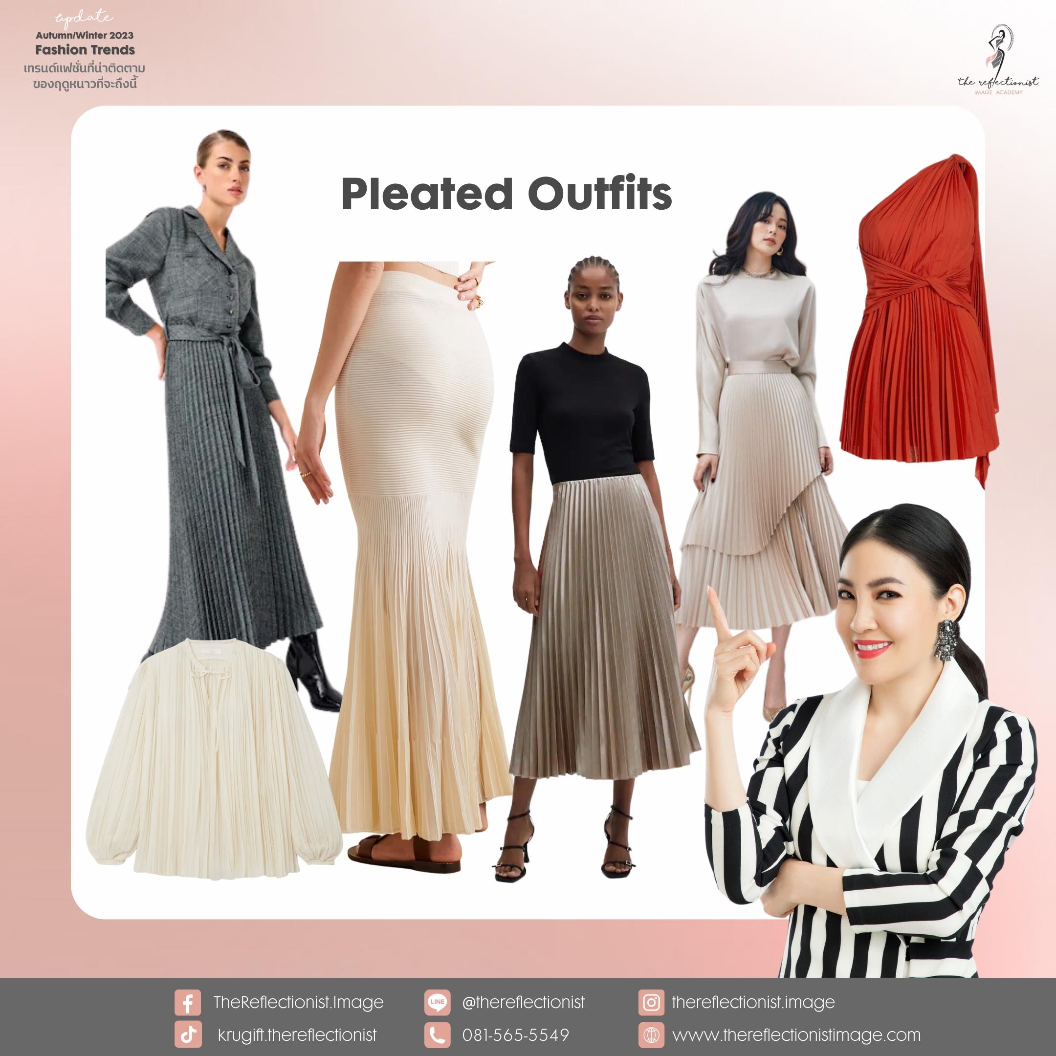 เสื้อผ้าแบบที่เป็นพลีท พริ้วๆ ไม่ว่าจะเป็นเสื้อ กางเกง กระโปรง หรือเดรส ควรติดตู้ไว้สักหนึ่งตัวนะคะ เพราะเป็นอีกหนึ่งเทรนด์ที่กำลังอิน และยังคลาสสิค สามารถใส่ได้เรื่อยๆแน่นอน