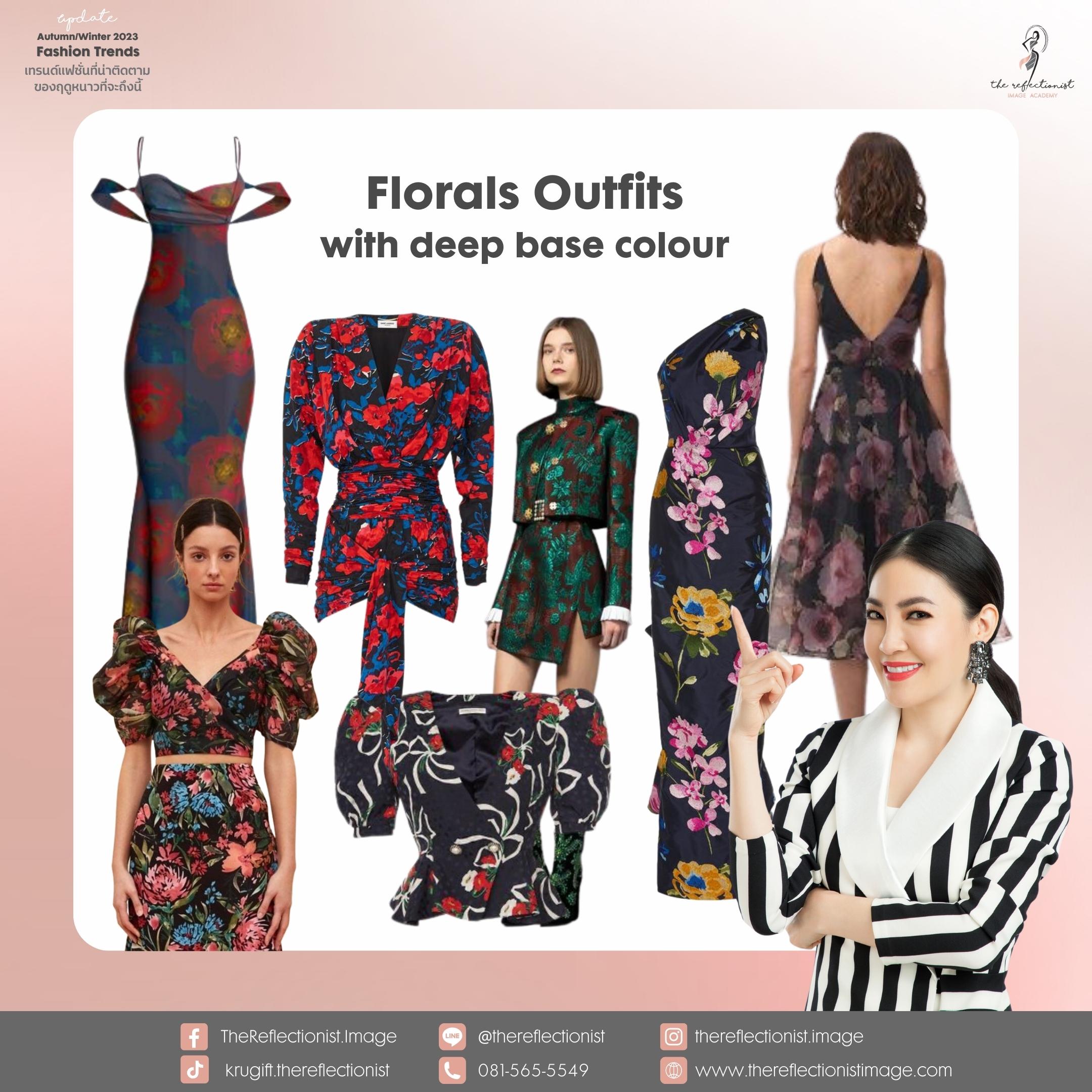 เทรนด์เสื้อผ้าลายดอกไม้เป็นเทรนด์ที่เรียกได้ว่ามาแรงตั้งแต่ช่วงแฟชั่นของ Spring/Summer 2023 แล้วแต่ก็ยังคงแรงอย่างต่อเนื่องใน Autumn/Winter 2023-2024 ด้วยนะคะ เพียงแต่จะเน้นให้เป็นชุดที่มีสีเข้ม และไม่เน้นสีสันสดใสเท่า Spring/Summer ค่ะ