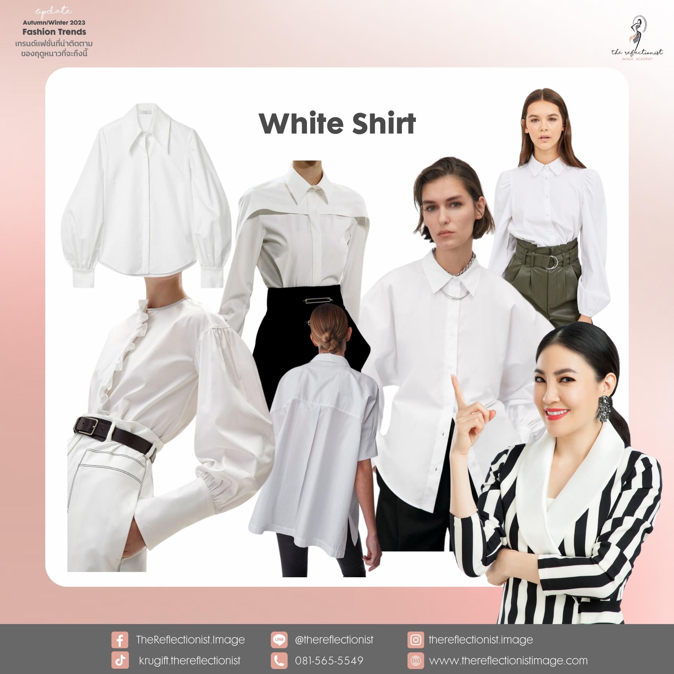 เทรนด์การใส่เสื้อเชิ๊ตสีขาวก็กำลังมาเช่นกันค่ะ ถึงแม้จะดูธรรมดาๆ แต่หลากหลายแบรนด์กับจับเสื้อเชิ๊ตสีขาวเรียบๆเหล่านี้ขึ้นบนรันเวย์ ไม่ว่าจะเป็นแบบใส่กับไทด์ หรือใส่เป็นเดรสเชิ๊ตก็มีนะคะ เป็นเทรนด์ที่เก๋มากเลยค่ะ ต้องตามเลยนะคะเทรนด์นี้