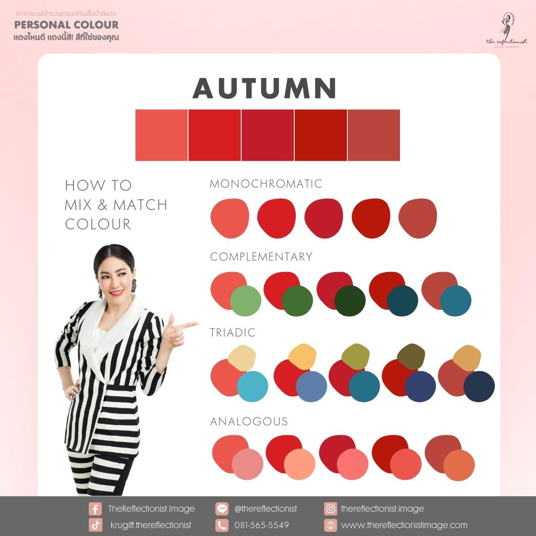 ใครมี Personal Colour ฤดูไหน ก็อย่าลืมเลือกสีแดงที่ใช่และลอง Mix and Match สีเสื้อผ้า และเครื่องประดับตามสีที่ครูกิ๊ฟแนะนำดูนะคะ รับรองว่า คุณจะมีลุคที่สวย สดใส แต่งสีแดงได้สนุก และดูน่าสนใจมากขึ้นในช่วงสิ้นปีนี้แน่นอนค่ะ