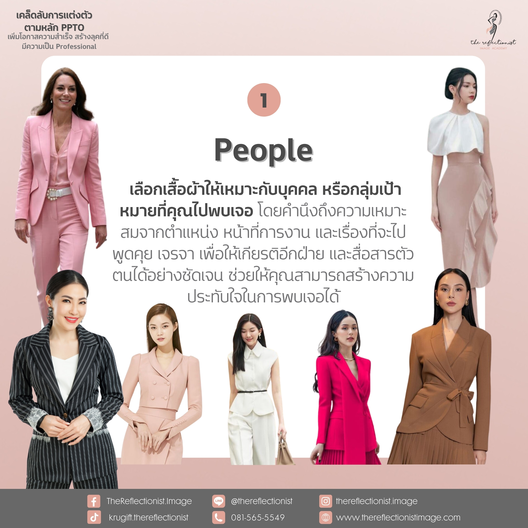 การแต่งตัวให้มีความเป็น Professional ไม่ใช่แค่การแต่งตัวในลุคที่สวย ดูดี หรือแค่แต่งตัวเป็น แต่ต้องแต่งตัวโดยคำนึงถึงหลัก “PPTO” ด้วย ซึ่งถ้าเราใส่ใจในเรื่องนี้ จะช่วยสร้างโอกาสที่ดีให้กับคุณ และสร้างความประทับใจที่คนอื่นมีต่อคุณได้