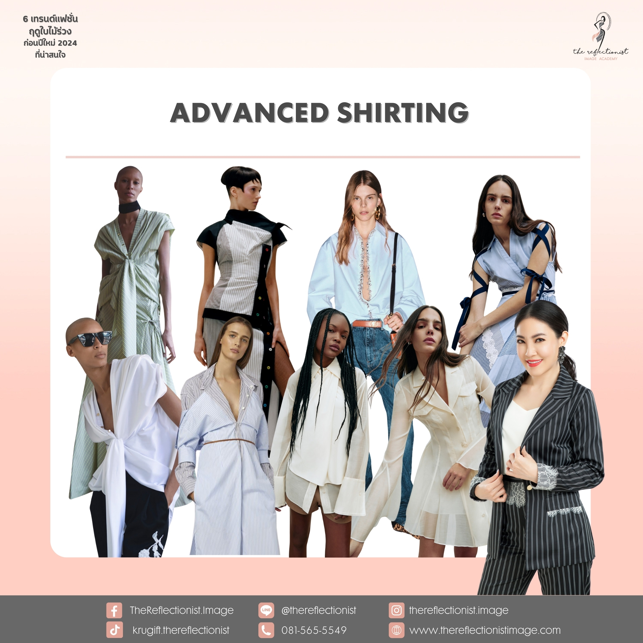 เทรนด์สุดท้าย คือเทรนด์เสื้อเชิ๊ตที่มีดีเทล ลูกเล่น หรือรูปทรงที่โดดเด่น แปลกตา เป็นอีกหนึ่งเทรนด์ที่น่าสนใจ และเหมาะที่จะใส่ในสภาพอากาศช่วงสิ้นปีที่ร้อนมากกว่าหนาวแบบเมืองไทยของเรา ใส่แล้วจะทำให้ลุคเสื้อเชิ๊ตของคุณดูไม่น่าเบื่อ และดูมีอะไรมากยิ่งขึ้นด้วยนะคะ