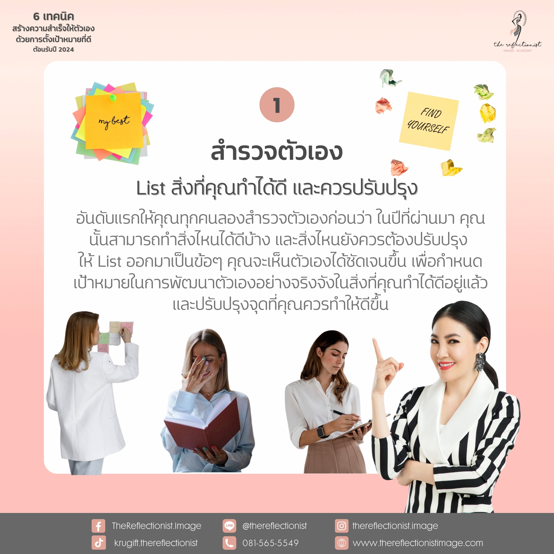 อันดับแรกให้คุณทุกคนลองสำรวจตัวเองก่อนว่า ในปีที่ผ่านมาคุณนั้นสามารถทำสิ่งไหนได้ดีบ้าง และสิ่งไหนยังควรต้องปรับปรุงให้ List ออกมาเป็นข้อๆ คุณจะเห็นตัวเองได้ชัดเจนขึ้น เพื่อกำหนดเป้าหมายในการพัฒนาตัวเองอย่างจริงจังในสิ่งที่คุณทำได้ดีอยู่แล้ว และปรับปรุงจุดที่คุณควรทำให้ดีขึ้น