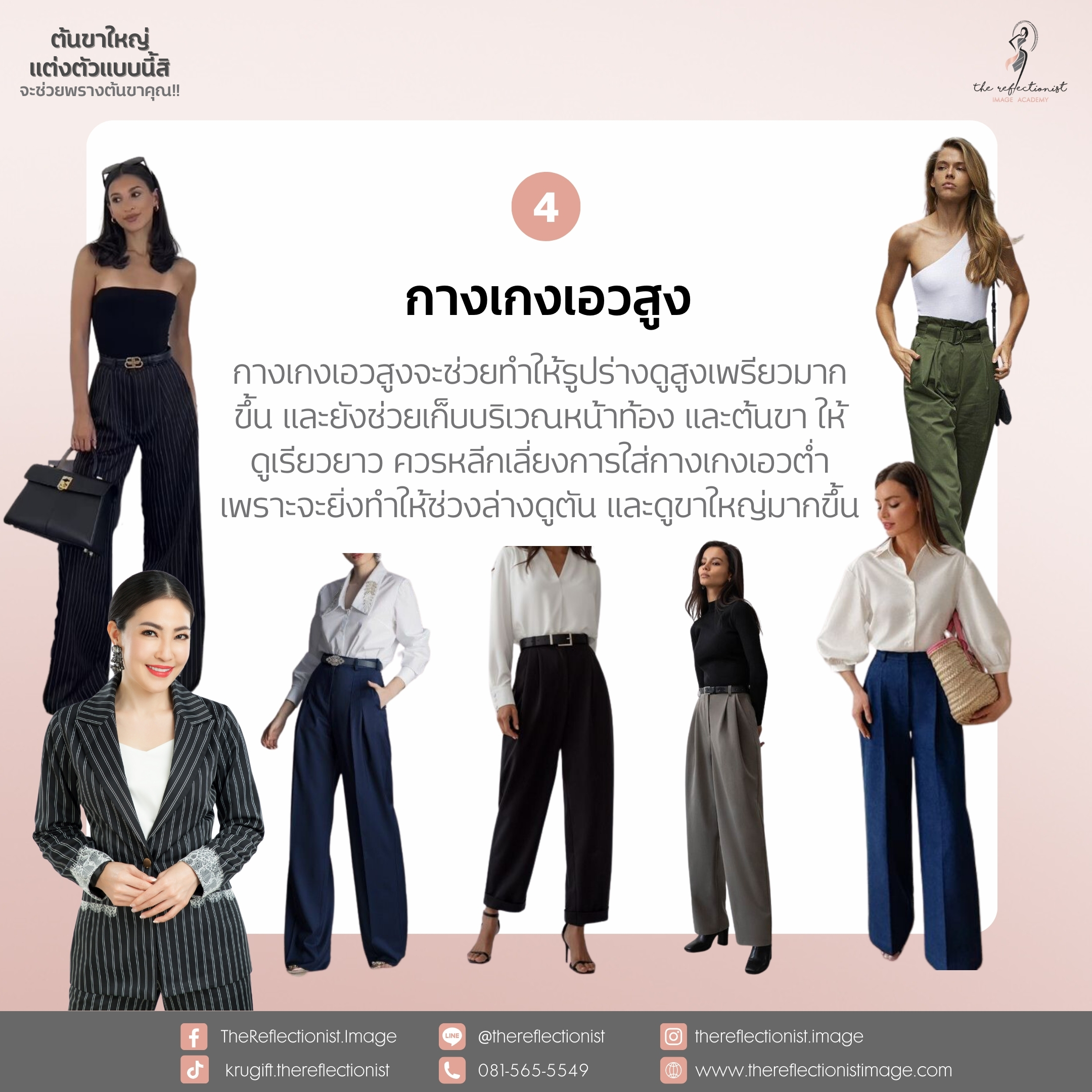 กางเกงเอวสูงจะช่วยทำให้รูปร่างดูสูงเพรียวมากขึ้น และยังช่วยเก็บบริเวณหน้าท้อง และต้นขา ให้ดูเรียวยาว