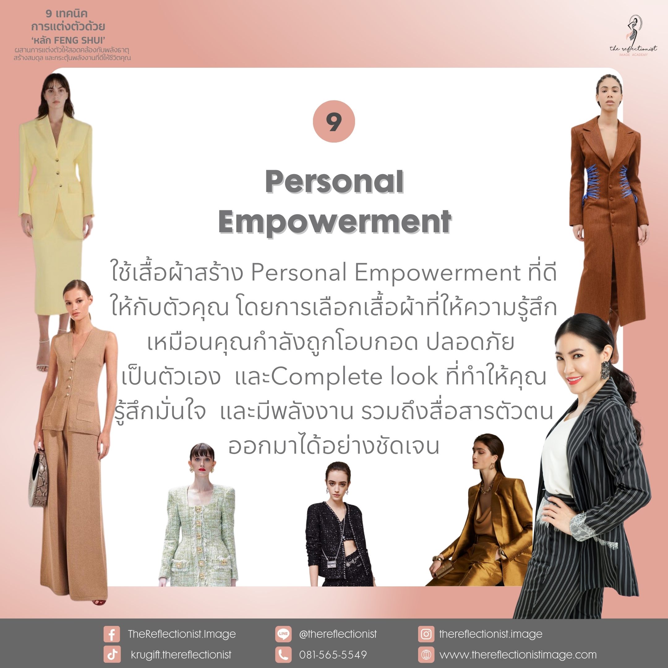 ใช้เสื้อผ้าสร้าง Personal Empowerment ที่ดีให้กับตัวคุณ โดยการเลือกเสื้อผ้าที่ให้ความรู้สึกเหมือนคุณกำลังถูกโอบกอด ปลอดภัย เป็นตัวเอง และComplete look ที่ทำให้คุณรู้สึกมั่นใจ และมีพลังงาน รวมถึงสื่อสารตัวตนออกมาได้อย่างชัดเจน