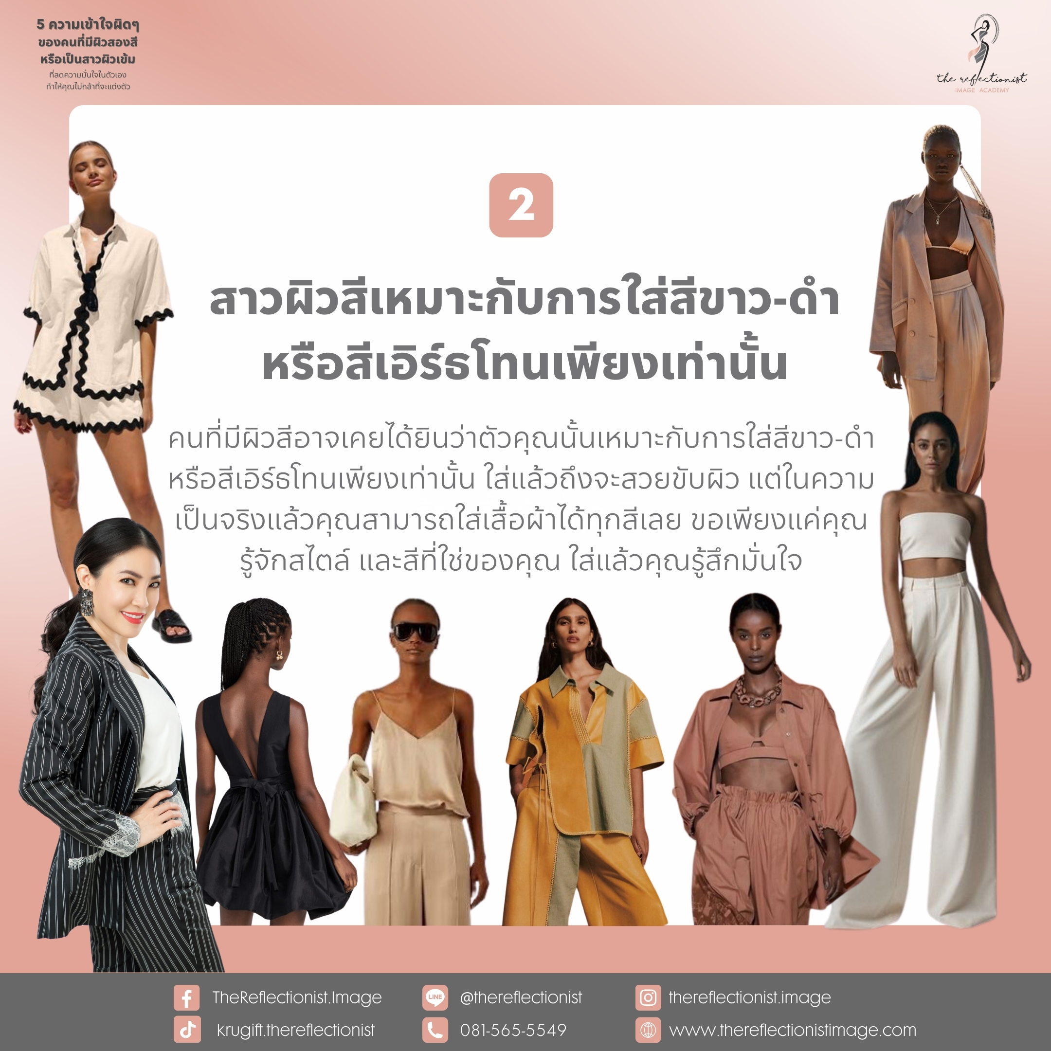 แต่คุณรู้ไหมคะว่าต่อให้คุณจะมีผิวสีอะไรก็สามารถสนุกกับการแต่งตัวให้ออกมาสวย และเหมาะกับคุณได้ เพียงแค่ลบความเชื่อเหล่านี้ออกไป