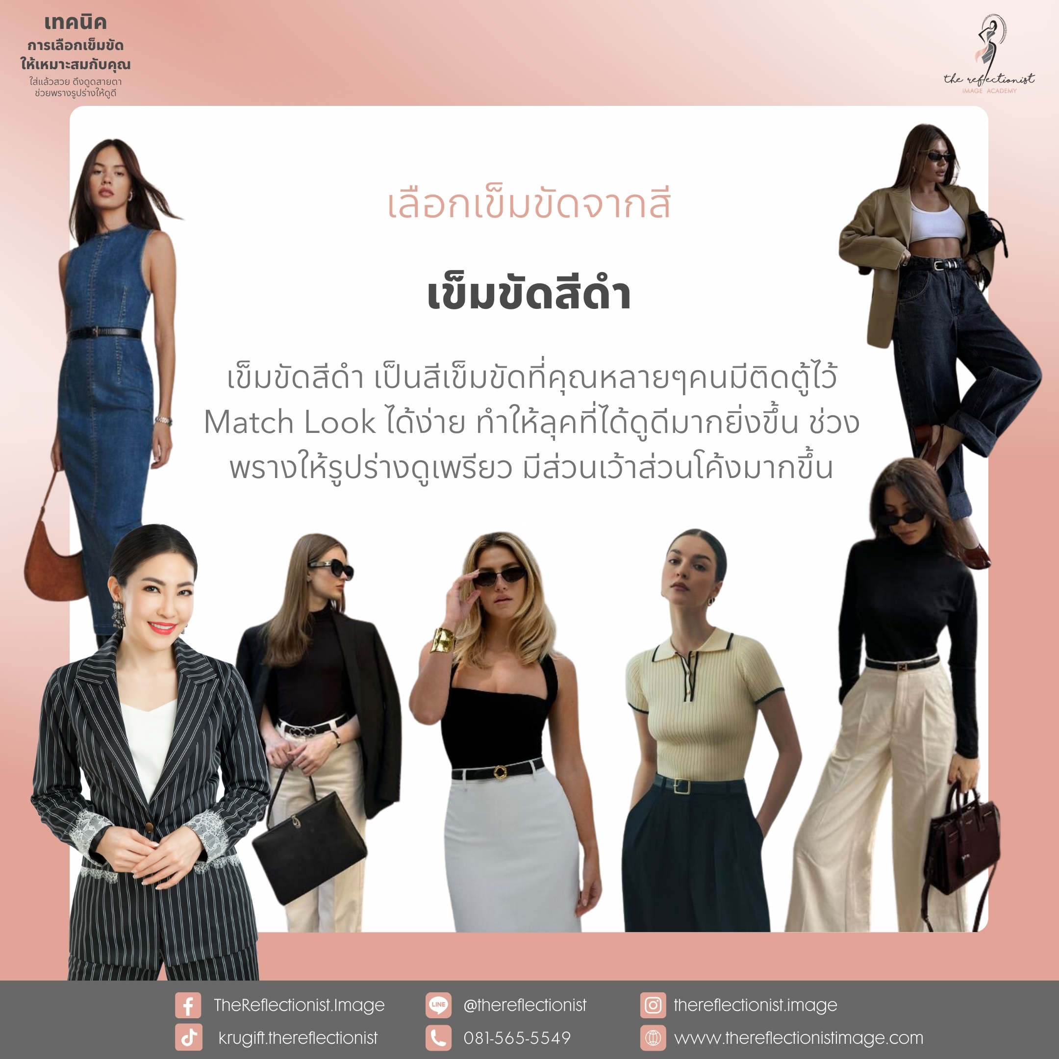 เข็มขัดสีดำ เป็นสีเข็มขัดที่คุณหลายๆคนมีติดตู้ไว้ Match Look ได้ง่าย ทำให้ลุคที่ได้ดูดีมากยิ่งขึ้น ช่วงพรางให้รูปร่างดูเพรียว มีส่วนเว้าส่วนโค้งมากขึ้น