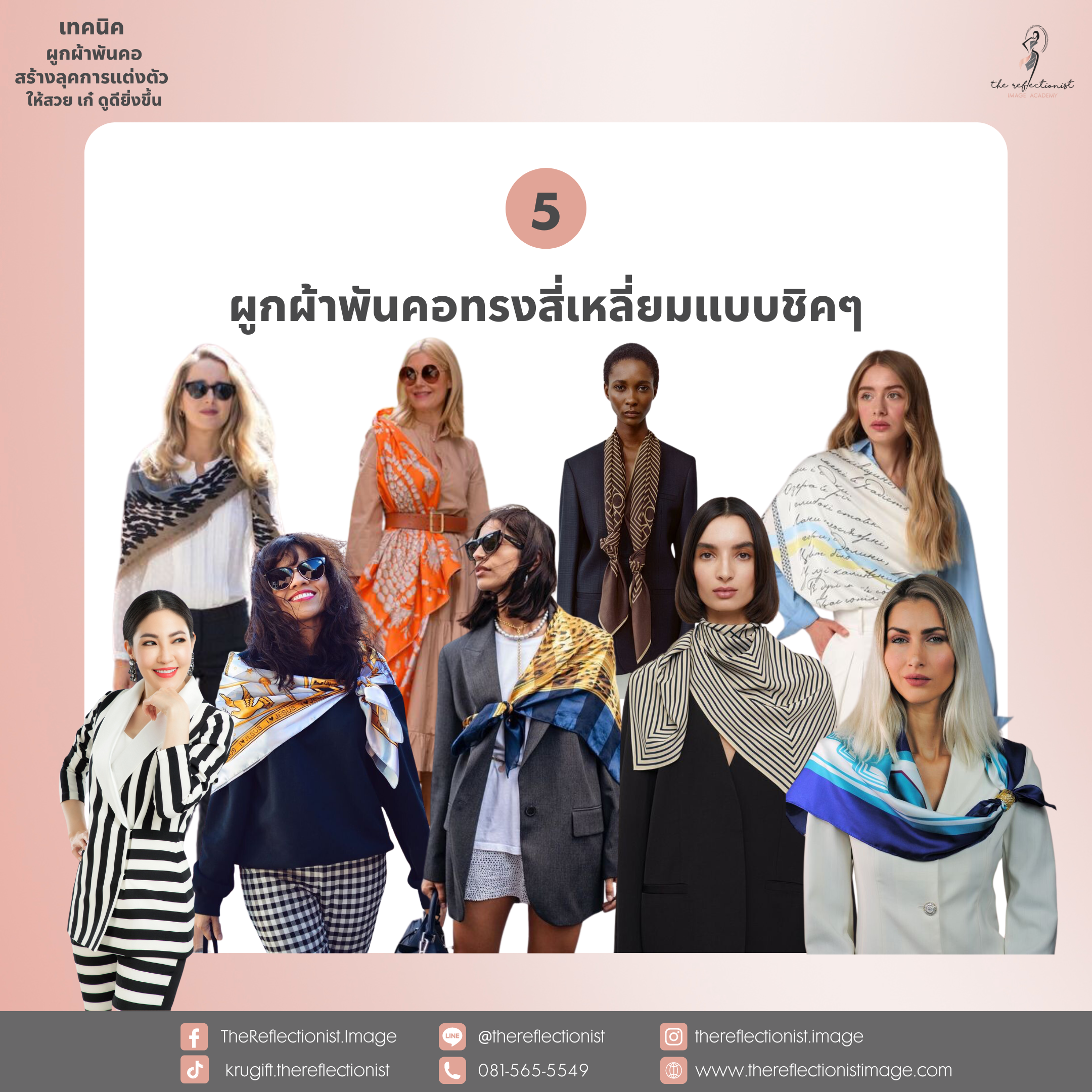 5.ผูกผ้าพันคอทรงสี่เหลี่ยมแบบชิคๆ