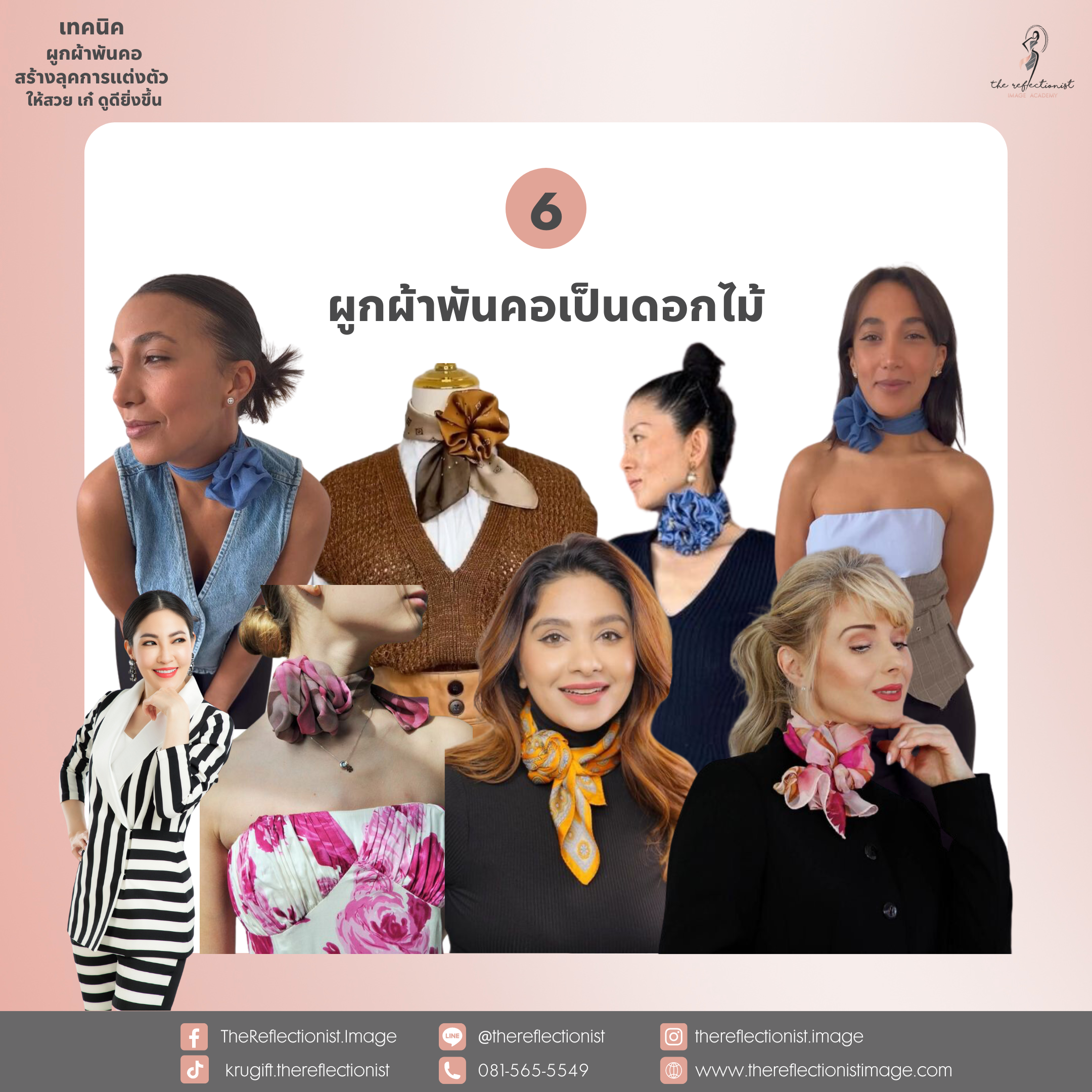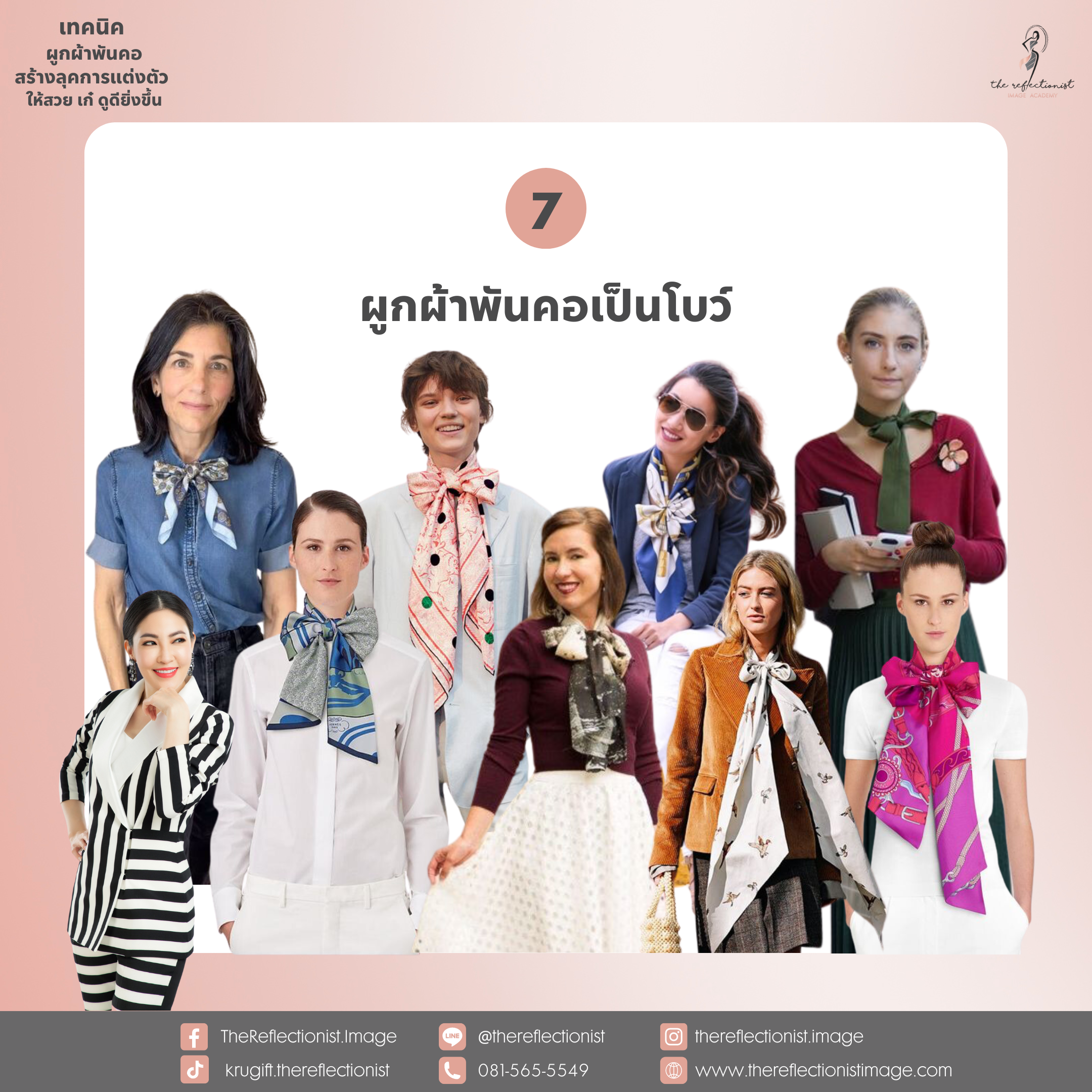 วันนี้ครูกิ๊ฟมี 7เทคนิคการผูกผ้าพันคอที่เข้ากับอากาศเมืองไทยมาฝาก และยังสร้างลุคการแต่งตัวให้สวย เก๋ ดูดีมีสไตล์มากยิ่งขึ้นด้วย