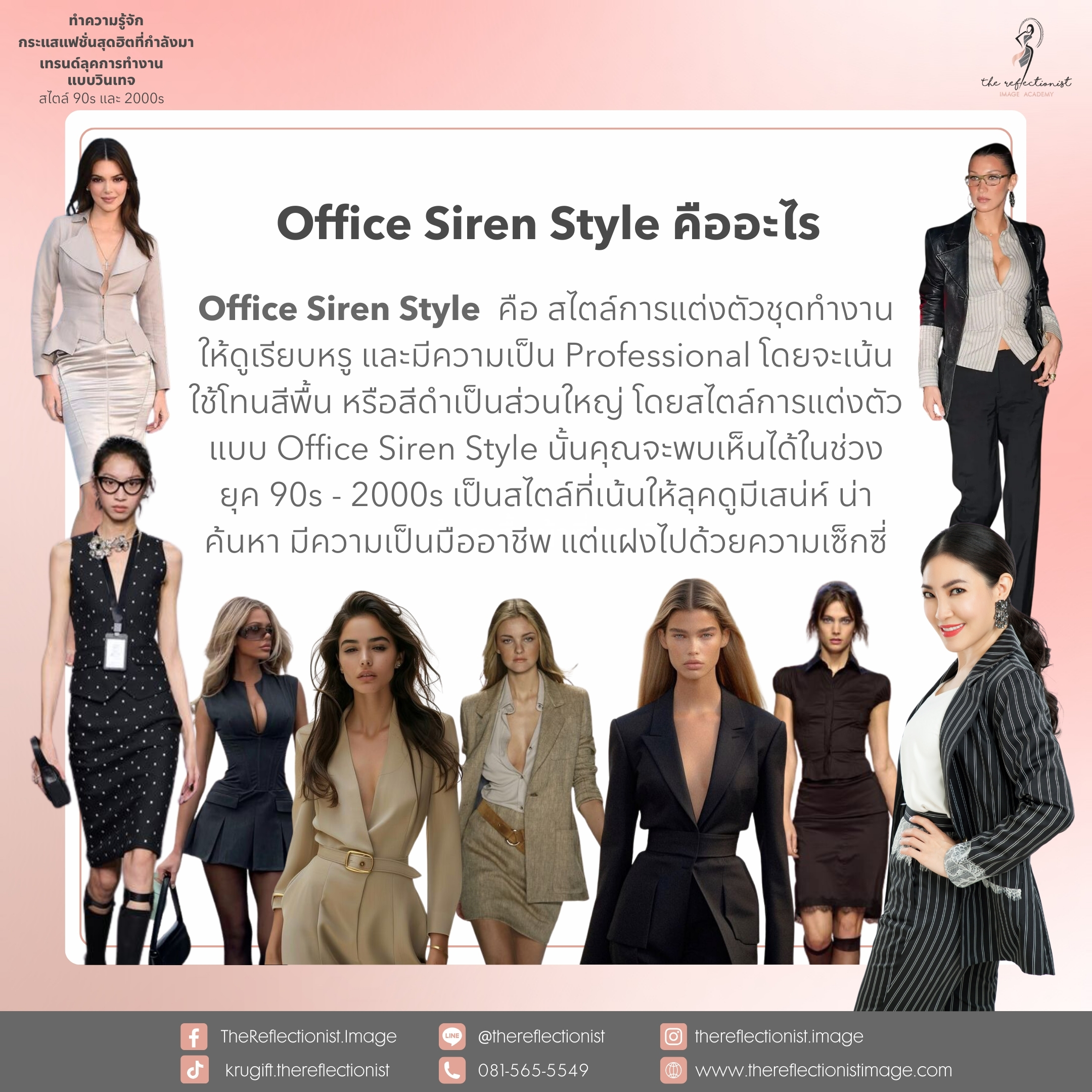 กระแสแฟชั่นลุคชุดทำงานสไตล์ 90s - 2000s ต้นๆ อย่าง Office Siren นั้นเป็นเทรนด์ที่กำลังมาในปีนี้ ครูกิ๊ฟเลยอยากพาคุณมารู้จักกับเทรนด์นี้กันค่ะ ซึ่ง Office Siren Style คืออะไร และลักษณะเด่นของลุคนี้คืออะไร วันนี้ครูกิ๊ฟมีคำตอบให้คุณ