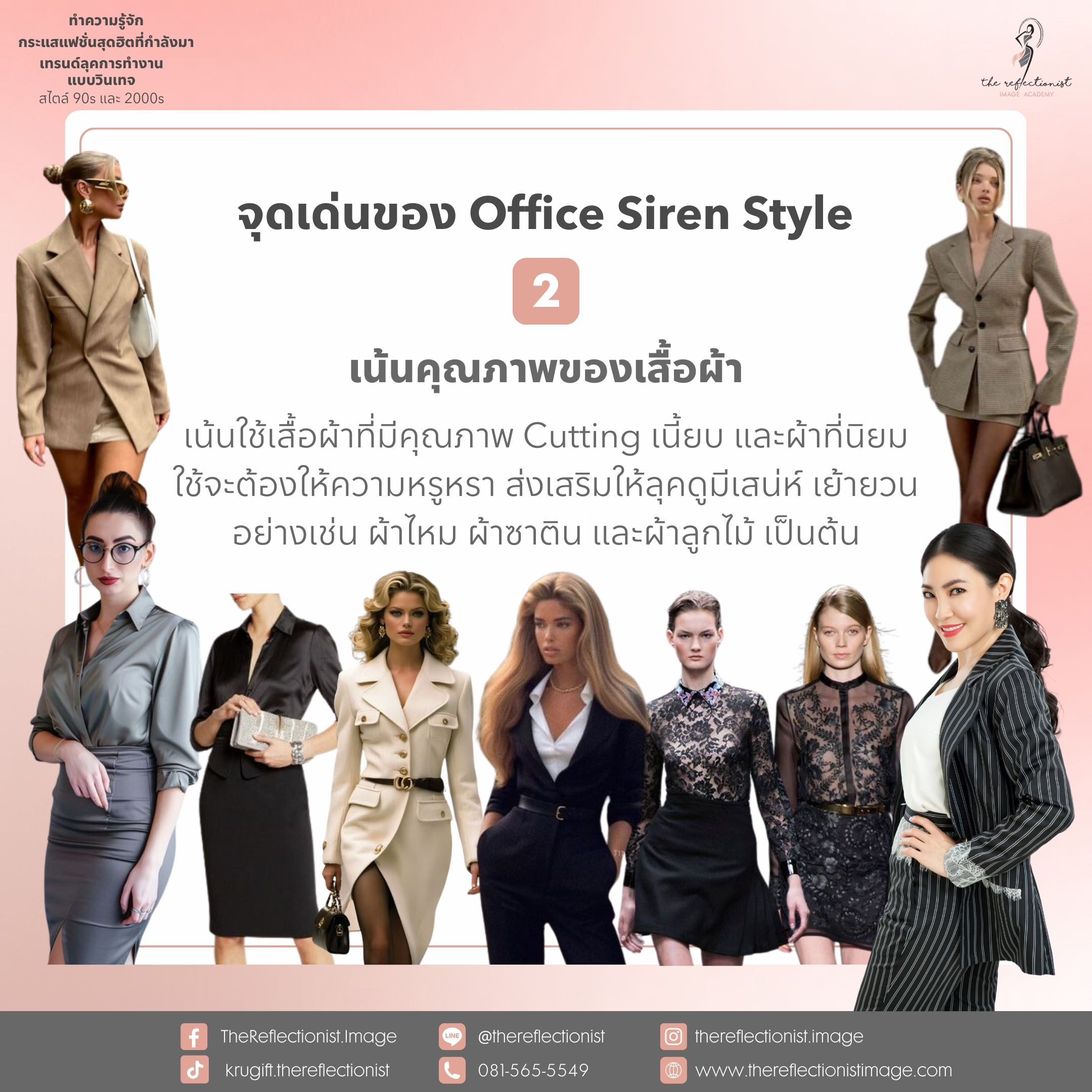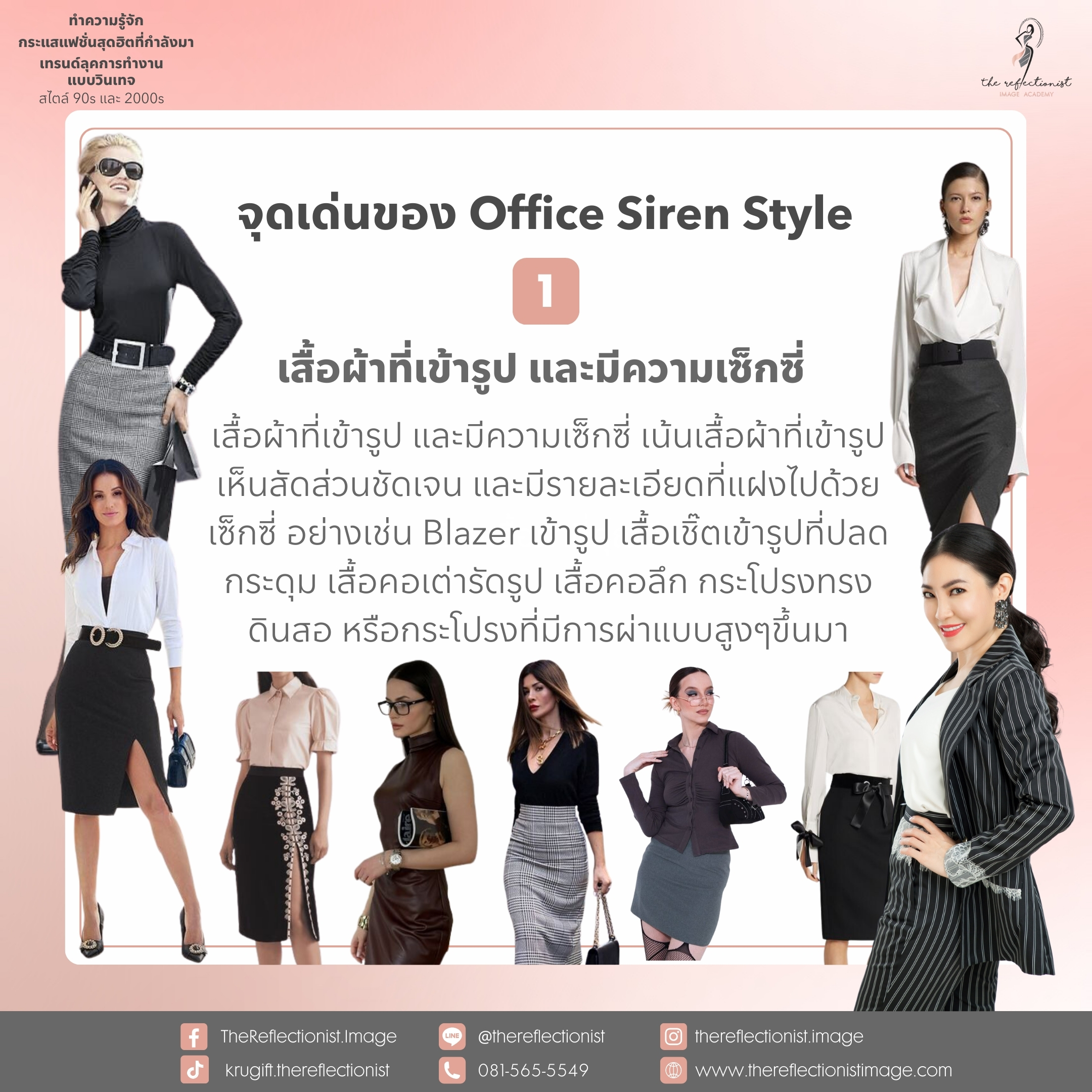 เสื้อผ้า รองเท้า และเครื่องประดับที่ครูกิ๊ฟแนะนำเหล่านี้ จะช่วยทำให้คุณอินเทรนด์นี้แน่นอน ลุคที่ได้ก็จะดูมีความเป็น Professional แต่แฝงไปด้วยเซ็กซี่ ลึกลับ และน่าค้นหา ดั่งชื่อ Office Siren ค่ะ ลองแต่งดูนะคะ