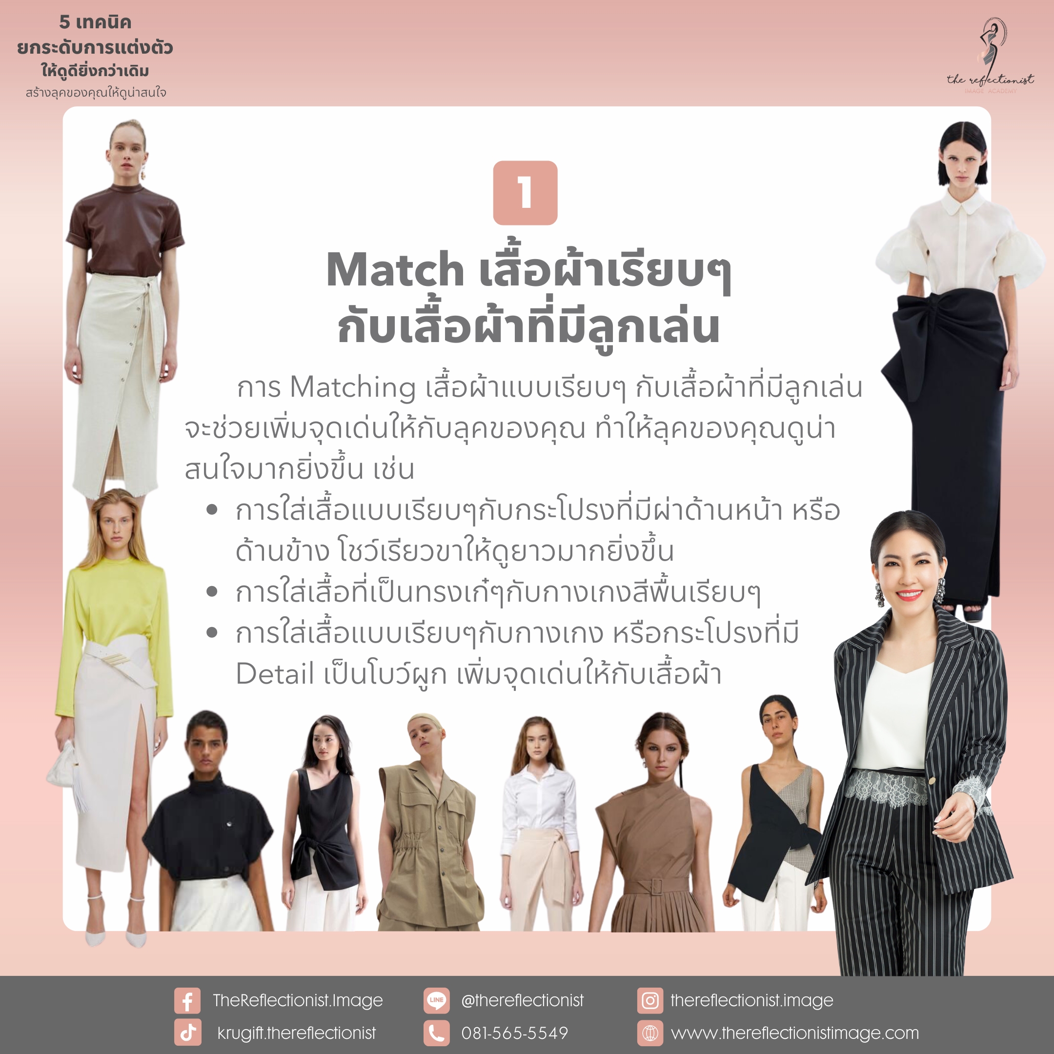 แต่เพียงแค่คุณมี 5 เทคนิคการ Mix and Match ที่ครูกิ๊ฟนำมาแนะนำคุณในวันนี้ คุณก็จะสามารถแต่งตัวให้สวย ดูดี และดูน่าสนใจได้ในทุกๆวันแน่นอนค่ะ