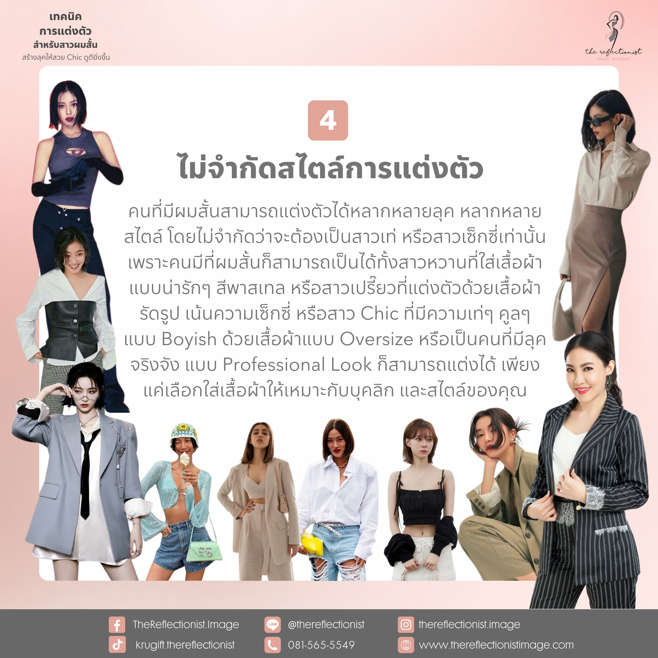 หวังว่าทั้ง 4 เทคนิคที่ครูกิ๊ฟนำมาแนะนำคุณในวันนี้จะช่วยทำให้คุณแต่งตัวแบบสาวผมสั้นได้อย่างมั่นใจมากยิ่งขึ้น