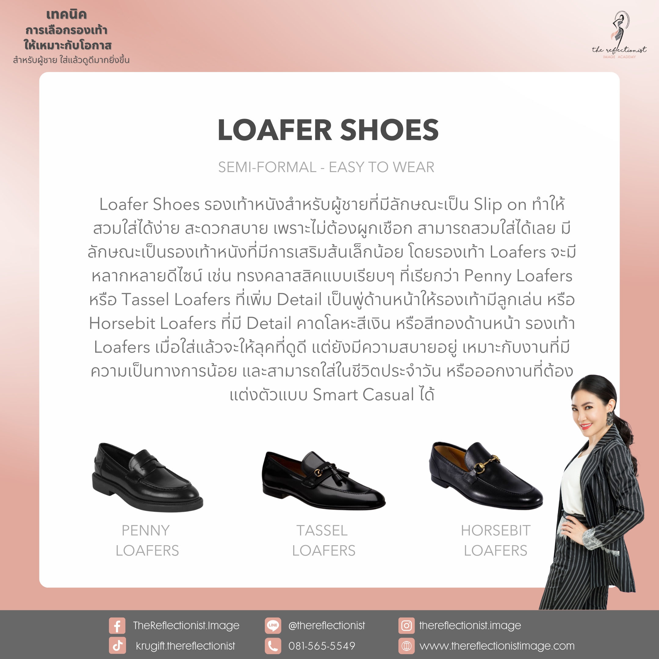 คุณจะเห็นว่ารองเท้าทุกแบบที่ครูกิ๊ฟแนะนำในวันนี้จะให้ทั้งลุค และความเป็นทางการที่ต่างกัน แต่ยังคงให้ความสุภาพเมื่อสวมใส่