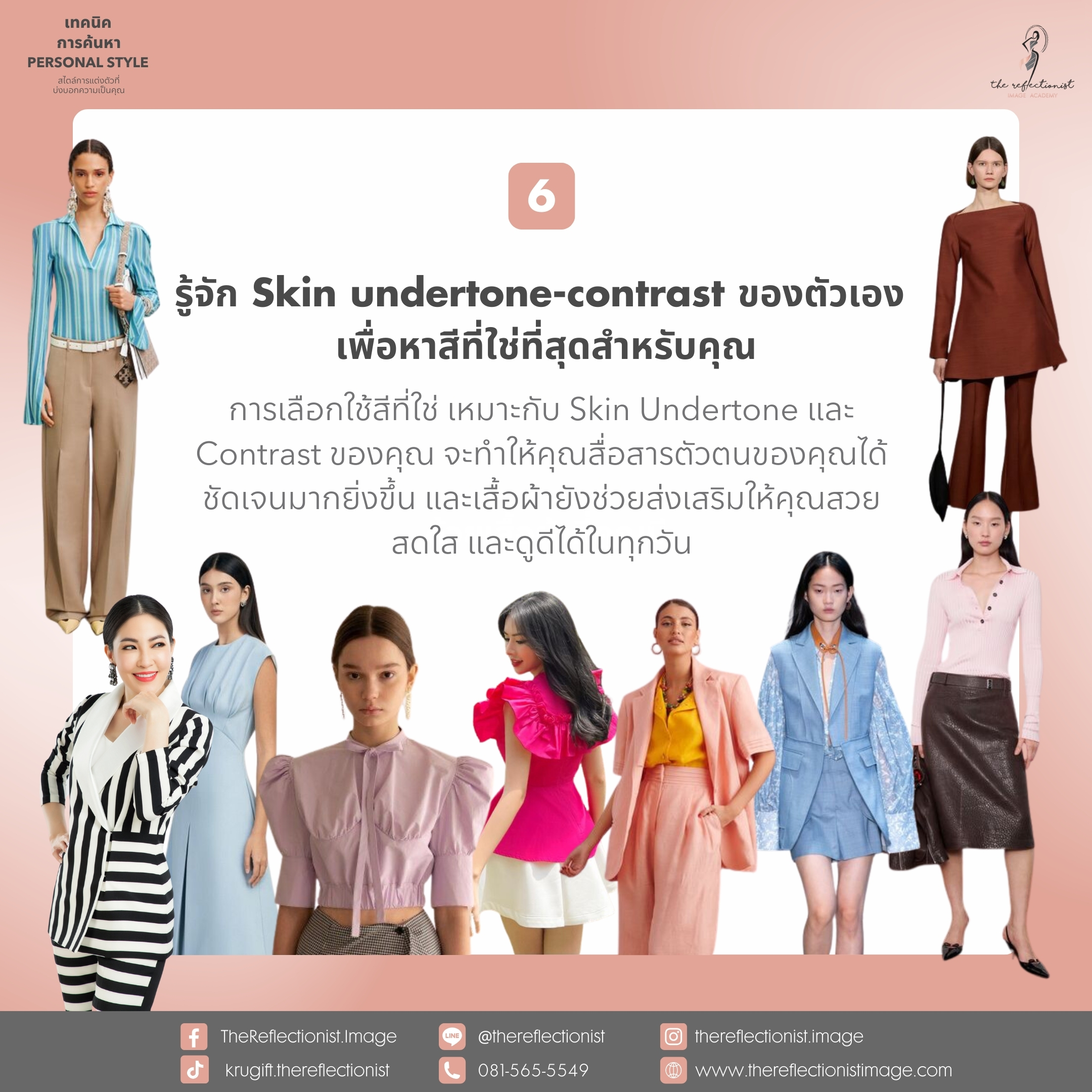 การเลือกใช้สีที่ใช่ เหมาะกับ Skin Undertone และ Contrast ของคุณ จะทำให้คุณสื่อสารตัวตนของคุณได้ชัดเจนมากยิ่งขึ้น และเสื้อผ้ายังช่วยส่งเสริมให้คุณสวย สดใส และดูดีได้ในทุกวัน