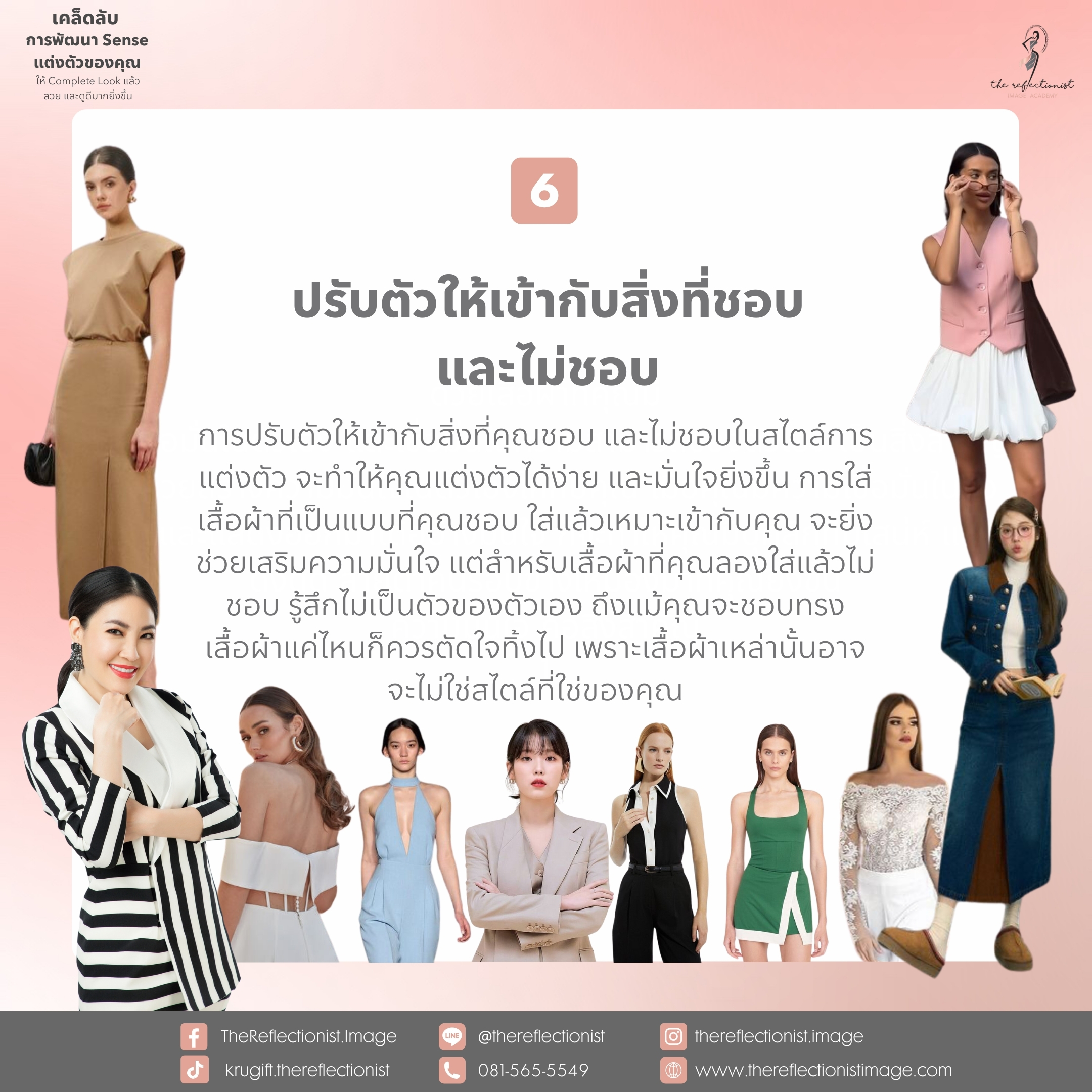การมี Sense ในการแต่งตัว และสามารถพัฒนาให้มากขึ้นกว่าเดิม จะช่วยให้คุณแต่งตัวแล้วสวย ดูดีมากยิ่งขึ้น โดยการพัฒนา Sense การแต่งตัวไม่ใช่เรื่องยาก เพียงคุณนำเคล็ดลับง่ายๆดังต่อไปนี้ที่ครูกิ๊ฟนำมาแนะนำคุณ ก็สามารถมี Sense การแต่งตัวที่ยอดเยี่ยมขึ้นกว่าเดิมแน่นอนค่ะ