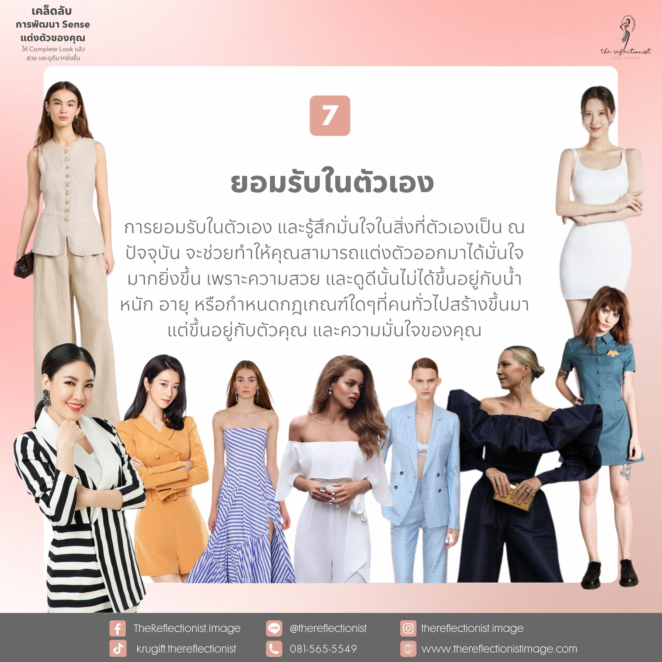 การยอมรับในตัวเอง และรู้สึกมั่นใจในสิ่งที่ตัวเองเป็น ณ ปัจจุบัน จะช่วยทำให้คุณสามารถแต่งตัวออกมาได้มั่นใจมากยิ่งขึ้น เพราะความสวย และดูดีนั้นไม่ได้ขึ้นอยู่กับน้ำหนัก อายุ หรือกำหนดกฎเกณฑ์ใดๆที่คนทั่วไปสร้างขึ้นมา แต่ขึ้นอยู่กับตัวคุณ และความมั่นใจของคุณ