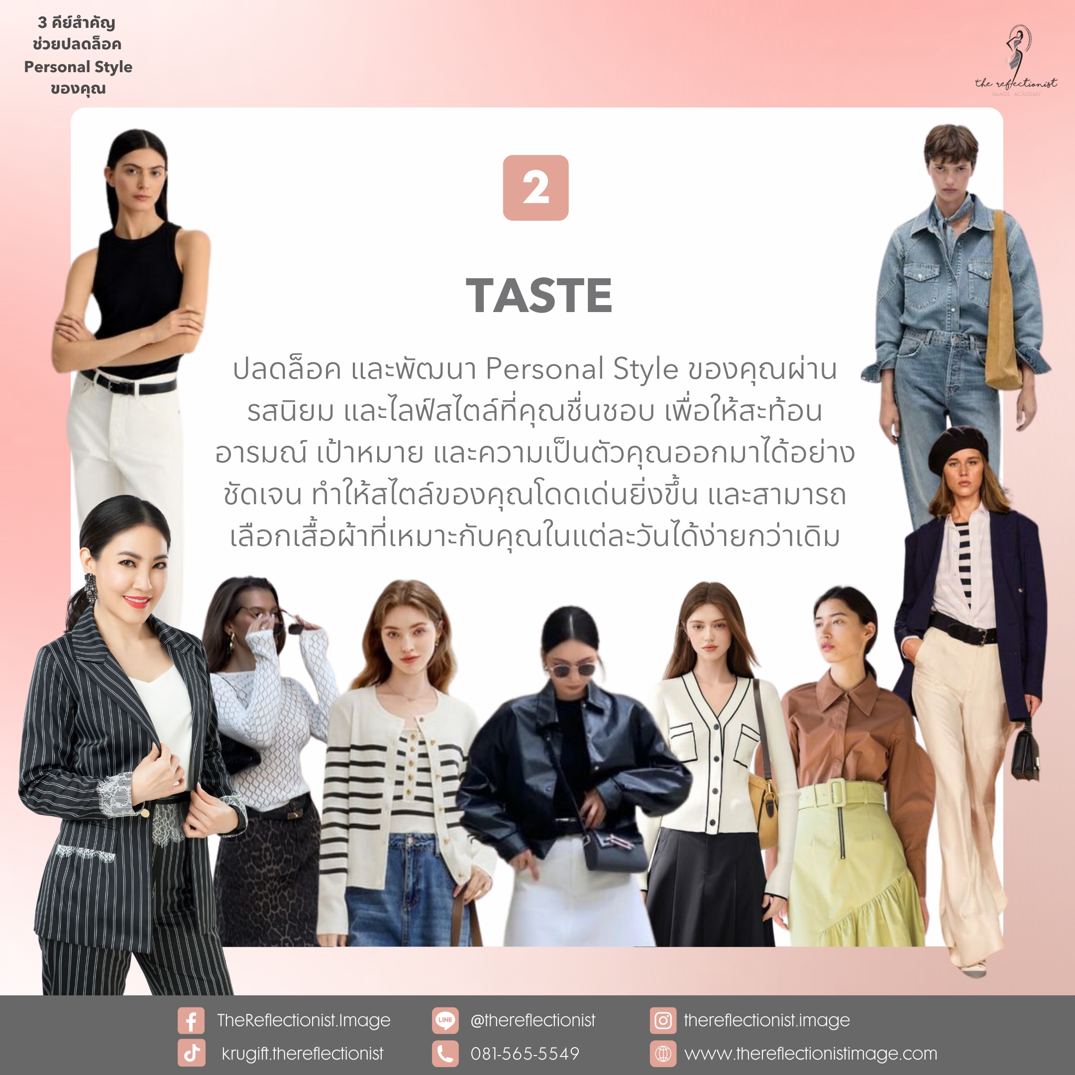 ปลดล็อค และพัฒนา Personal Style ของคุณผ่านรสนิยม และไลฟ์สไตล์ที่คุณชื่นชอบ เพื่อให้สะท้อนอารมณ์ เป้าหมาย และความเป็นตัวคุณออกมาได้อย่างชัดเจน ทำให้สไตล์ของคุณโดดเด่นยิ่งขึ้น และสามารถเลือกเสื้อผ้าที่เหมาะกับคุณในแต่ละวันได้ง่ายกว่าเดิม