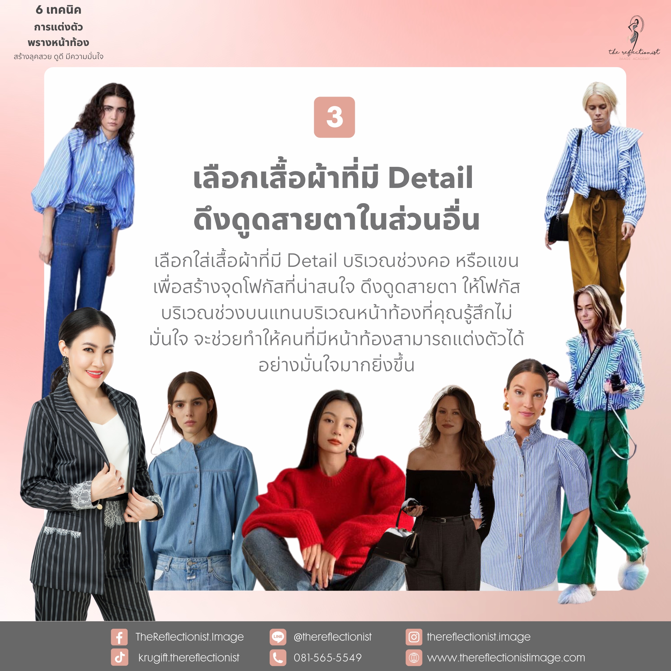 3.เลือกเสื้อผ้าที่มี Detail ดึงดูดสายตาในส่วนอื่น