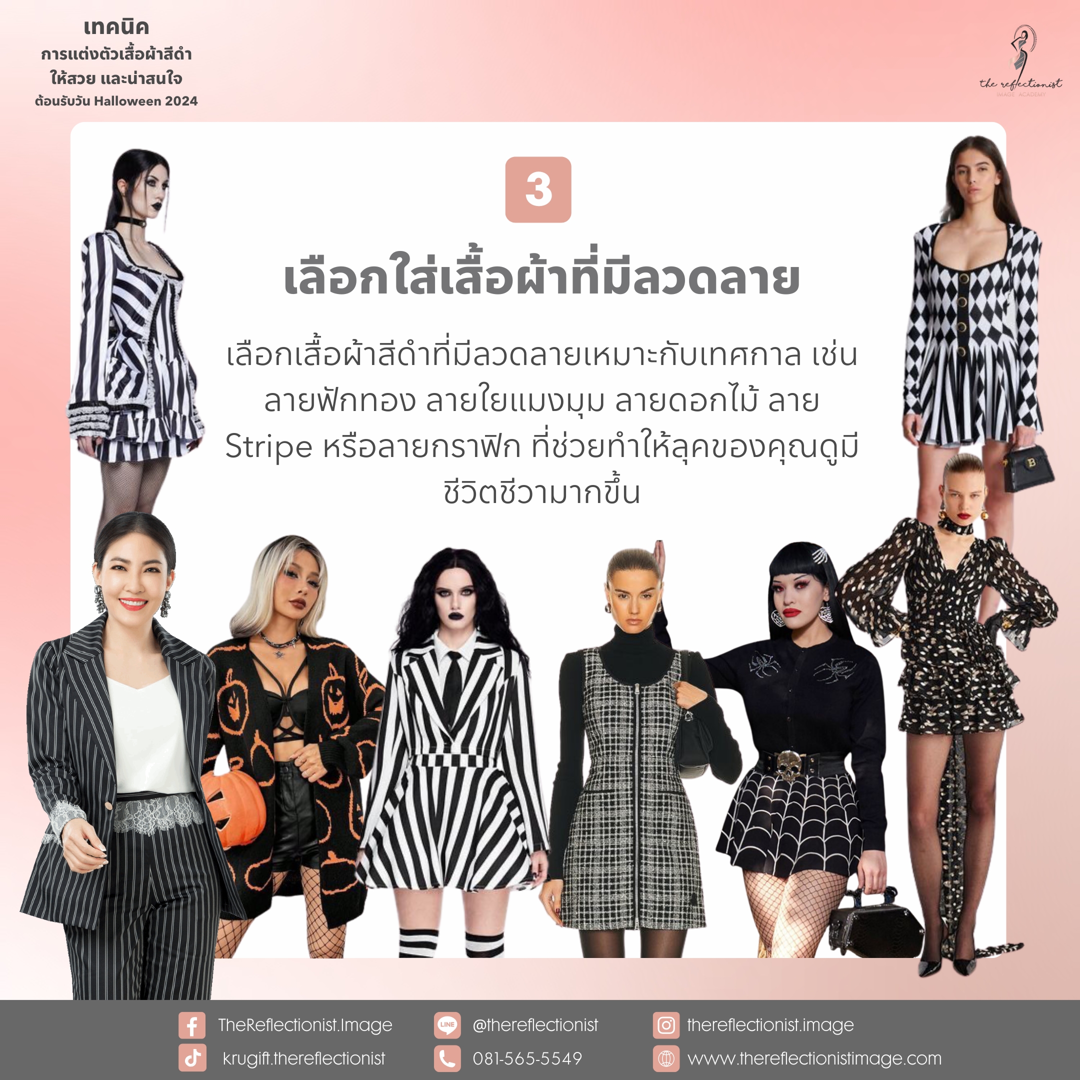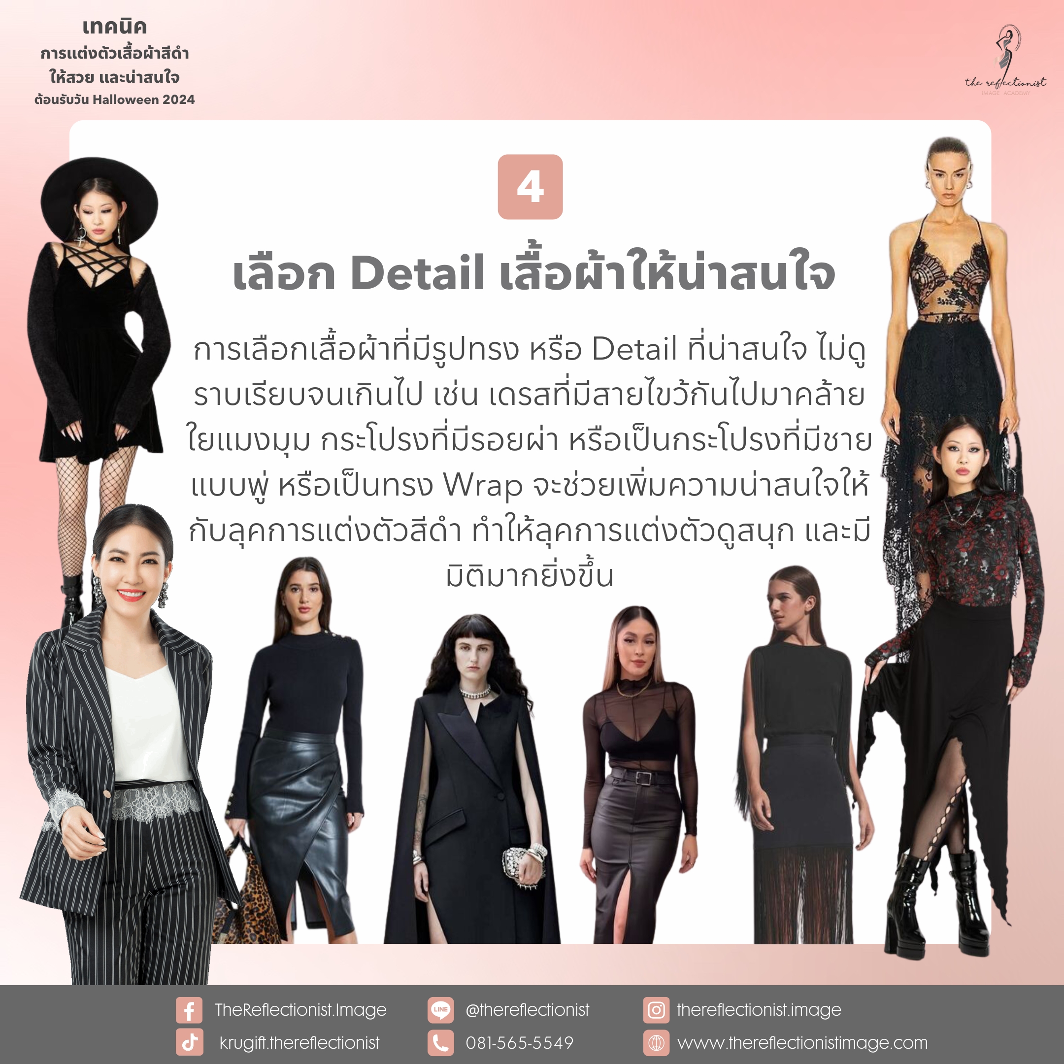 การแต่งตัวในวันฮาโลวีนด้วยลุคเสื้อผ้าสีดำก็สามารถสร้างสนุกสนาน มีออร่าที่น่าสนใจ ผ่านความคิดสร้างสรรค์ในการ Mix and Match ของคุณได้ ครูกิ๊ฟหวังว่าเทคนิคเหล่านี้จะช่วยให้คุณเลือกมีลุคในวันฮาโลวีนที่สวย และโดดเด่นน่าสนใจมากยิ่งขึ้นค่ะ