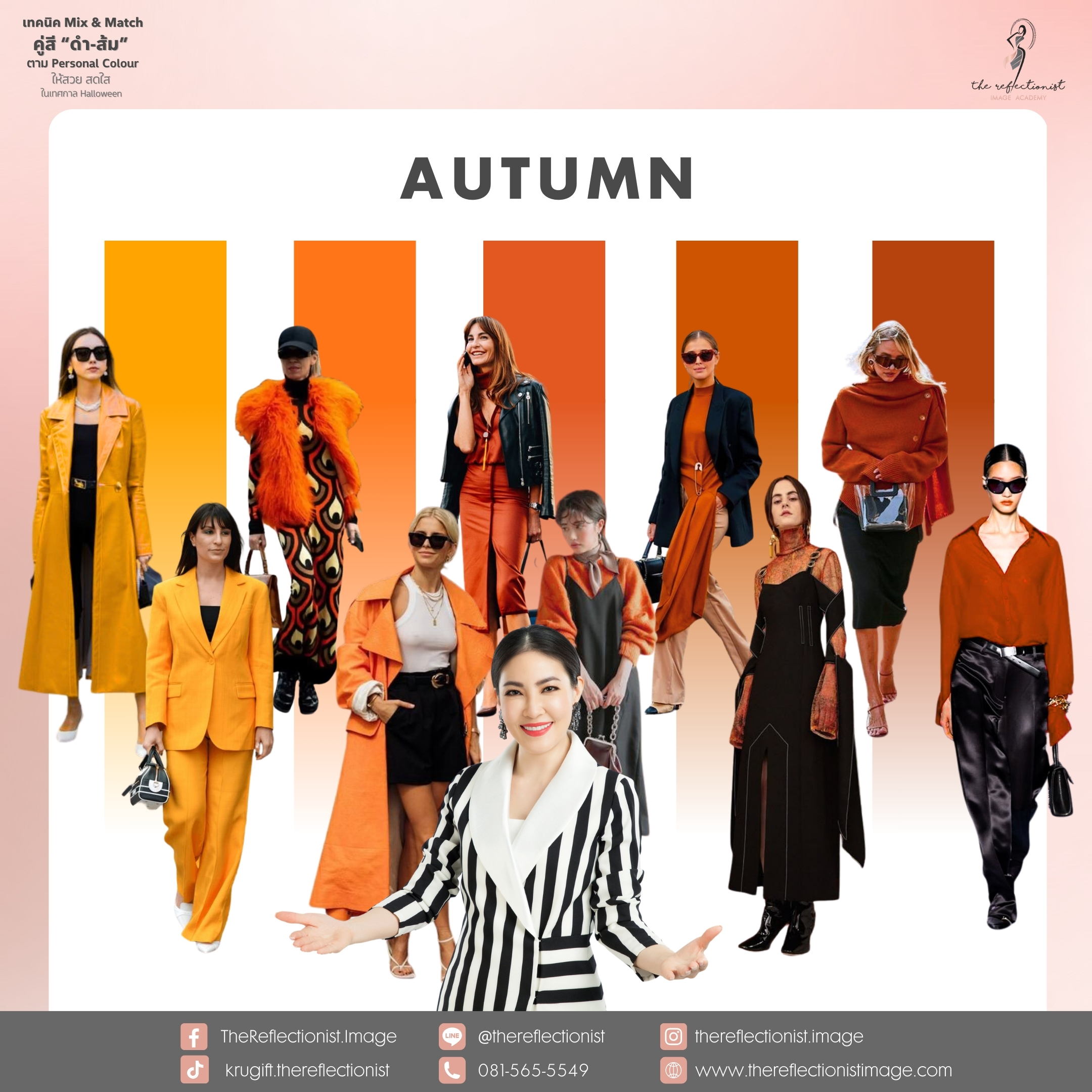 การ Matching สีเสื้อผ้าเพิ่มสีสันให้ลุคการแต่งตัวในวันฮาโลวีนให้ดูน่าสนใจ นอกจากการใส่แค่เพียงสีขาว-ดำ ก็คือ การ Matching สีเสื้อผ้าในโทนสีส้ม หรือโทนสีคล้ายกับสีฟักทอง อีกหนึ่งสัญลักษณ์ในวันฮาโลวีน เพื่อให้คุณได้มีไอเดียในการแต่งตัวในเทศกาลฮาโลวีนปี 2024 นี้มากยิ่งขึ้น ครูกิ๊ฟจะมาแนะนำโทนสีส้มที่เหมาะกับแต่ละ Season ให้กับคุณ จะมีสีส้มไหนโทนไหนบ้างสามารถดูได้ดังรูปเลยค่ะ