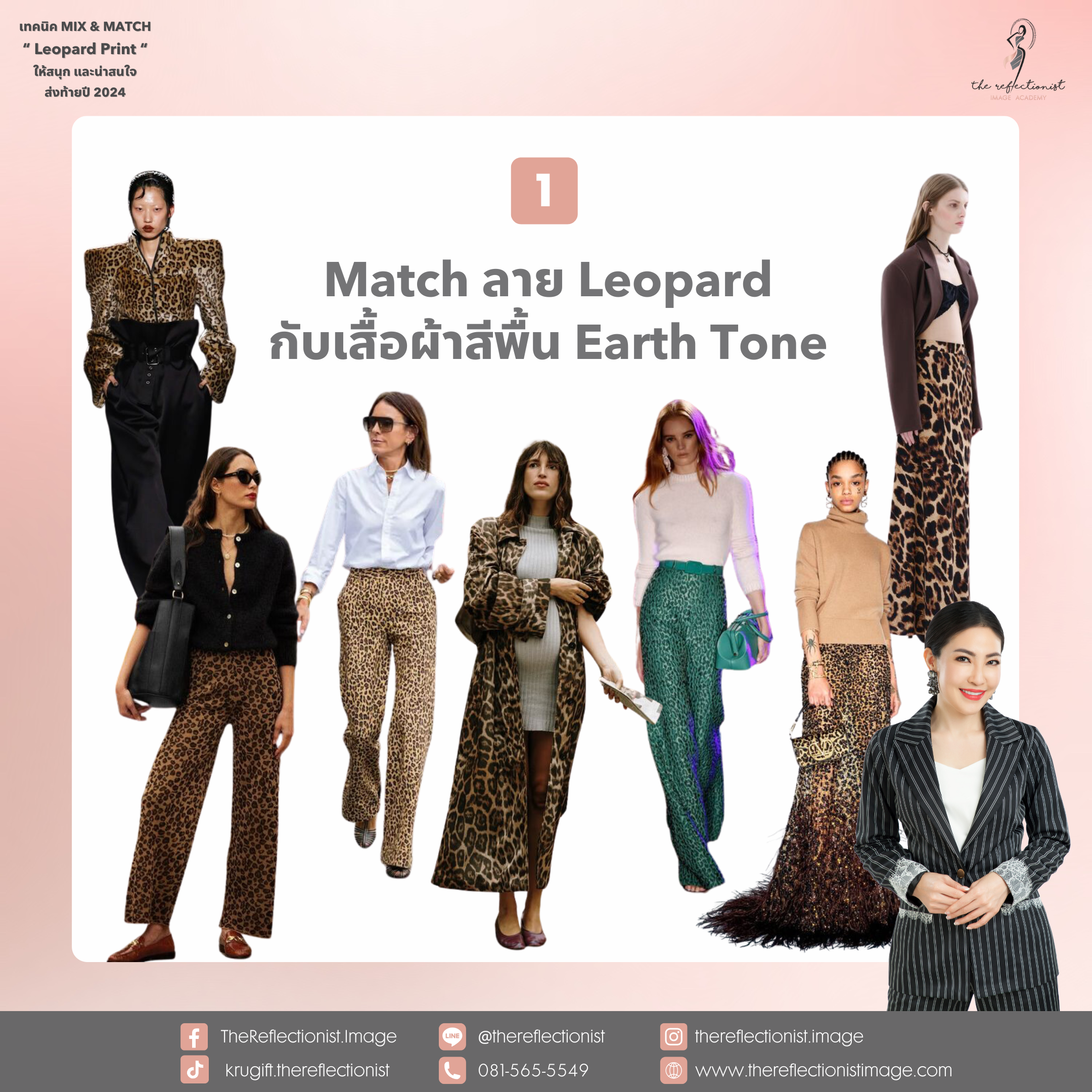 การจับคู่ลาย Leopard กับเสื้อผ้าสีพื้น Earth Tone อย่างสีขาว สีเทา สีดำ หรือสีน้ำตาล เป็นเทคนิคง่ายๆในการแต่งตัวที่คุณสามารถลองแต่งตามได้ ให้ลุคที่มีความเรียบๆ แต่ดูโดดเด่นมากยิ่งขึ้น