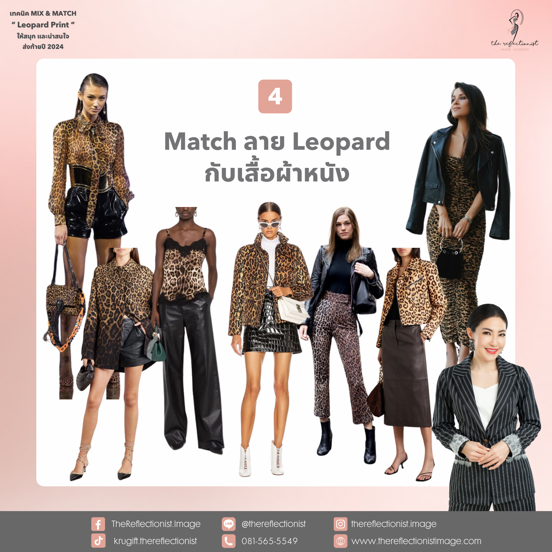 การจับคู่ลาย Leopard กับเสื้อผ้าหนัง จะให้คุณ Finish Look ออกมาแล้วที่ดูเท่ มีความมั่นใจ ดูโดดเด่น และมีสไตล์ ไม่ดู Feminine หรือเซ็กซี่มากเกินไป เป็นการผสมผสานสไตล์ให้มีมิติที่น่าสนใจมากยิ่งขึ้น