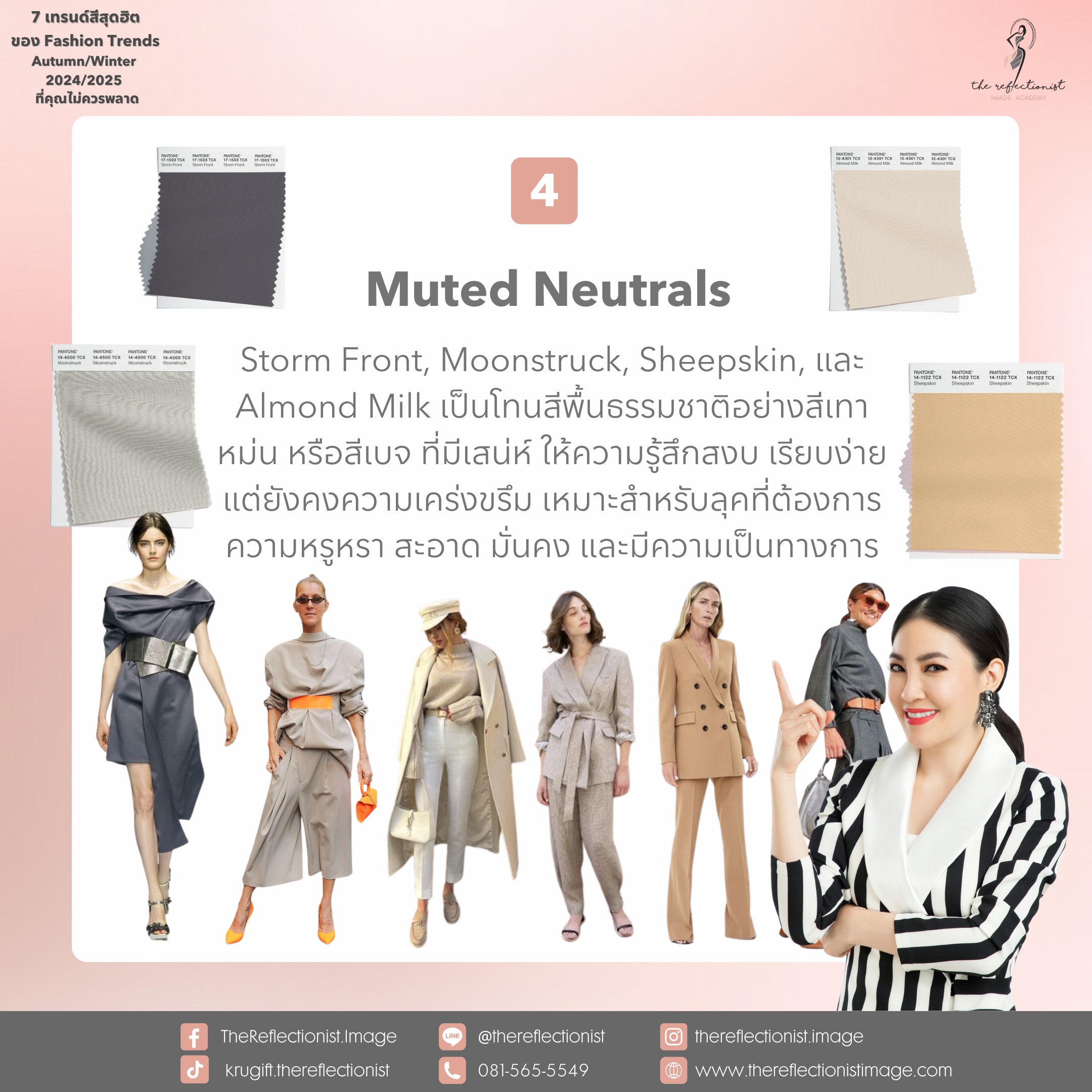 ในช่วงสิ้นปีเข้าสู่ฤดูหนาวแล้วแบบนี้ ครูกิ๊ฟมีเทรนด์ที่อยากนำมาแบ่งปันให้กับคุณได้อัพเดทกัน นั่นก็คือ เทรนด์สีสุดฮิตของ Autumn/Winter 2024/2025 ซึ่งมีโทนสีที่น่าสนใจทั้งหมด 7 โทนสี จะมีสีไหนให้คุณได้เลือกนำมาแต่งตัวให้เหมาะกับ Personal Colour ของคุณได้บ้าง สามารถอ่านรายละเอียดได้ดังนี้ค่ะ