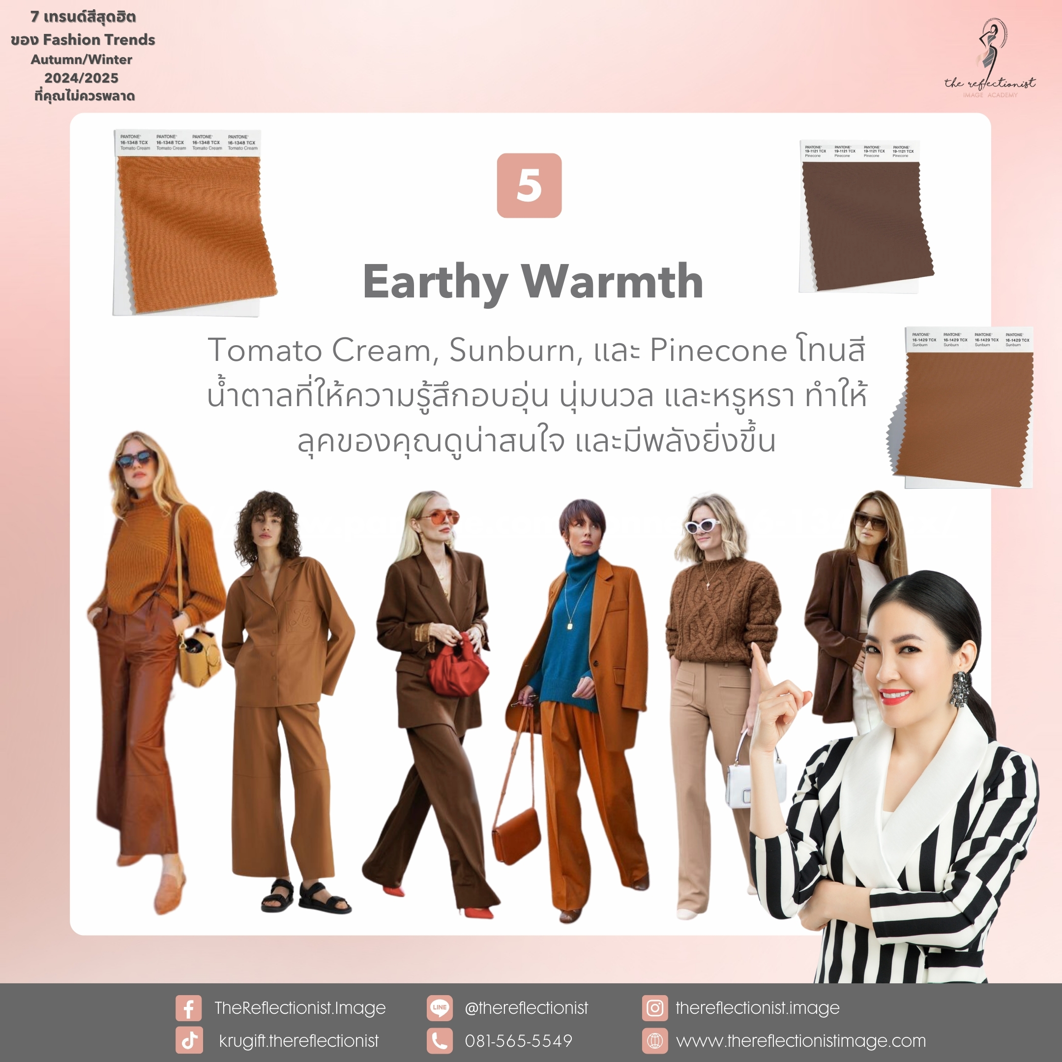 Tomato Cream, Sunburn, และ Pinecone โทนสีน้ำตาลที่ให้ความรู้สึกอบอุ่น นุ่มนวล และหรูหรา ทำให้ลุคของคุณดูน่าสนใจ และมีพลังยิ่งขึ้น