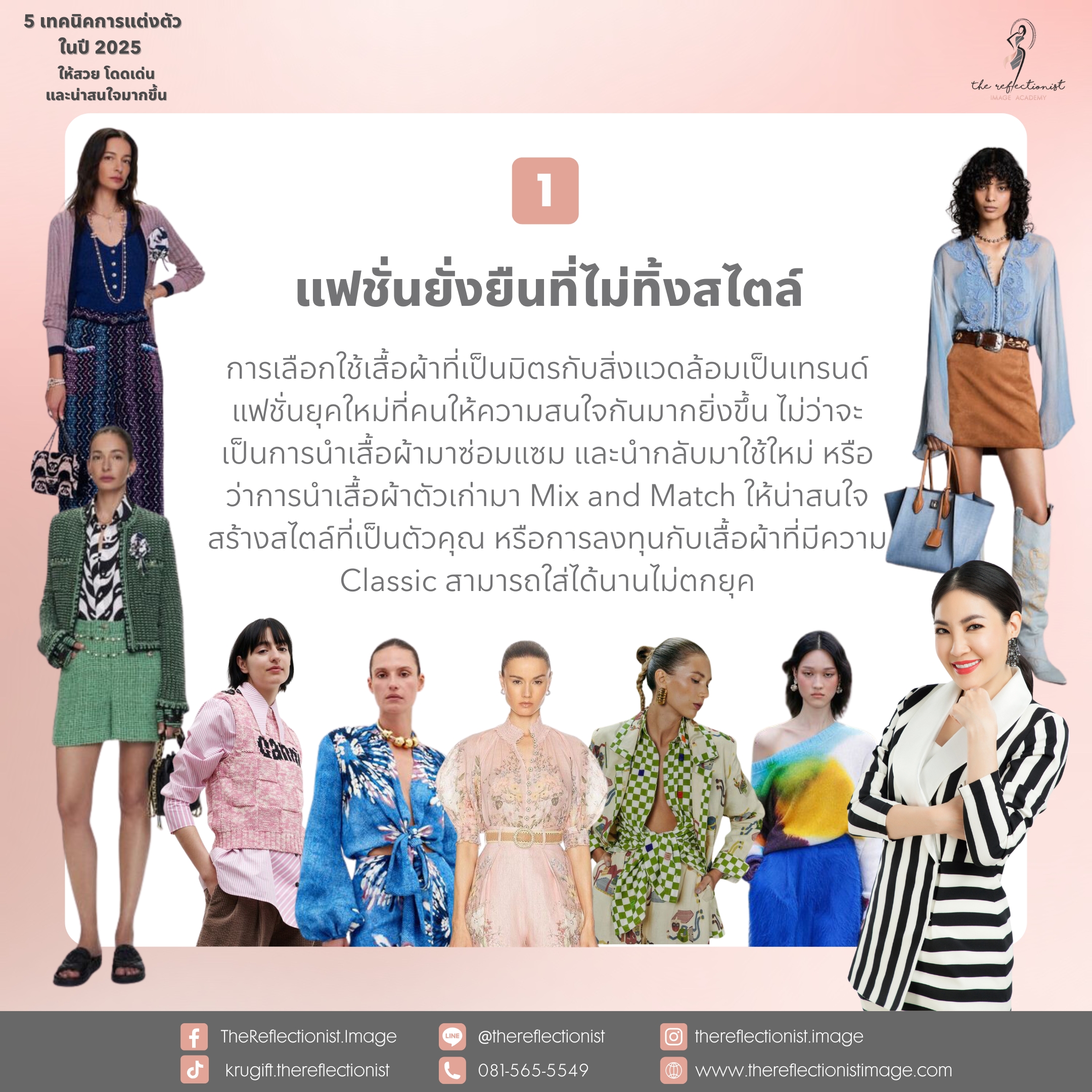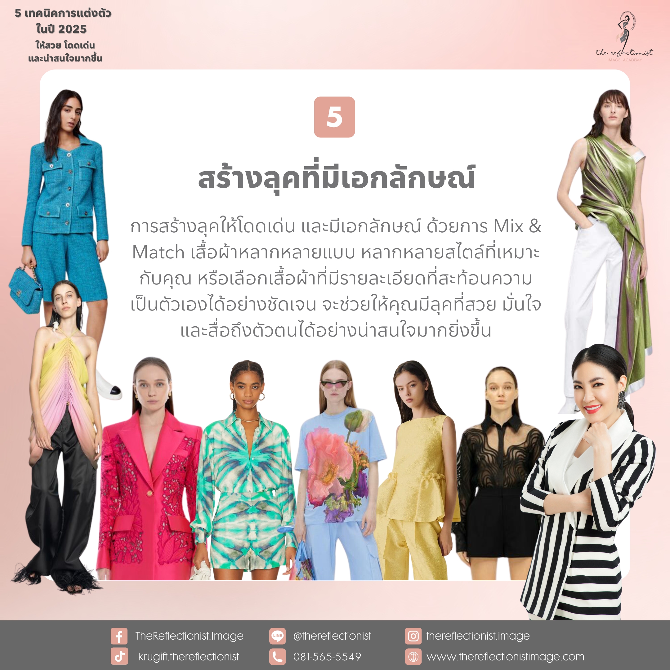 การแต่งตัวในปี 2025 ให้สวย โดดเด่น และมีความน่าสนใจ เหมาะกับเทรนด์แฟชั่นที่กำลังมานั้นจะไม่ใช่เรื่องยากอีกต่อไปค่ะ เพราะวันนี้ครูกิ๊ฟมีเทคนิคการแต่งตัวในปี 2025 มาแนะนำคุณ ซึ่งคุณสามารถนำทั้ง 5 เทคนิคนี้ไปปรับใช้ให้เหมาะกับสไตล์ของคุณกันได้อย่างแน่นอน สามารถอ่านรายละเอียดได้ดังนี้เลยค่ะ