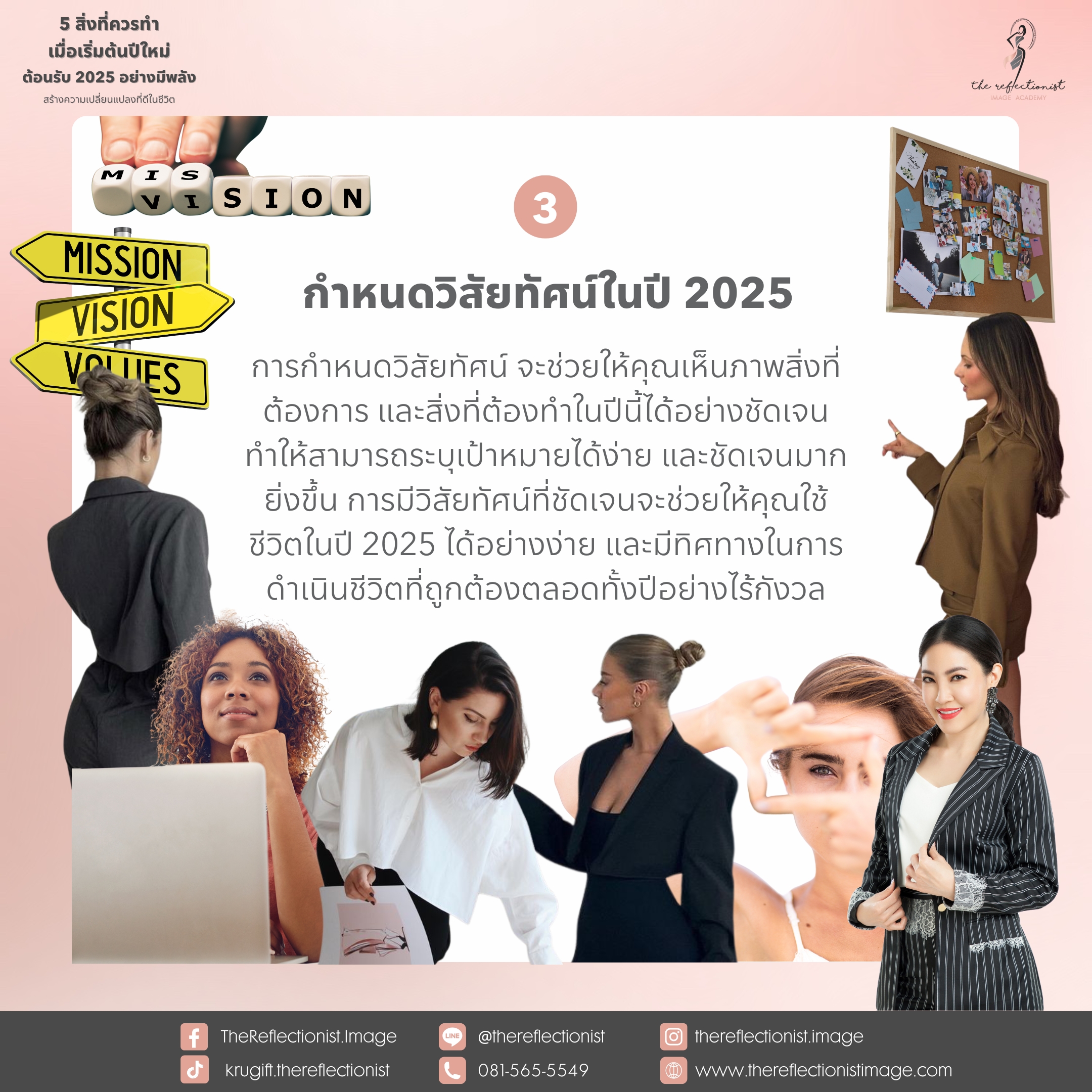 การกำหนดวิสัยทัศน์ จะช่วยให้คุณเห็นภาพสิ่งที่ต้องการ และสิ่งที่ต้องทำในปีนี้ได้อย่างชัดเจน ทำให้สามารถระบุเป้าหมายได้ง่าย และชัดเจนมากยิ่งขึ้น การมีวิสัยทัศน์ที่ชัดเจนจะช่วยให้คุณใช้ชีวิตในปี 2025 ได้อย่างง่าย และมีทิศทางในการดำเนินชีวิตที่ถูกต้องตลอดทั้งปีอย่างไร้กังวล
