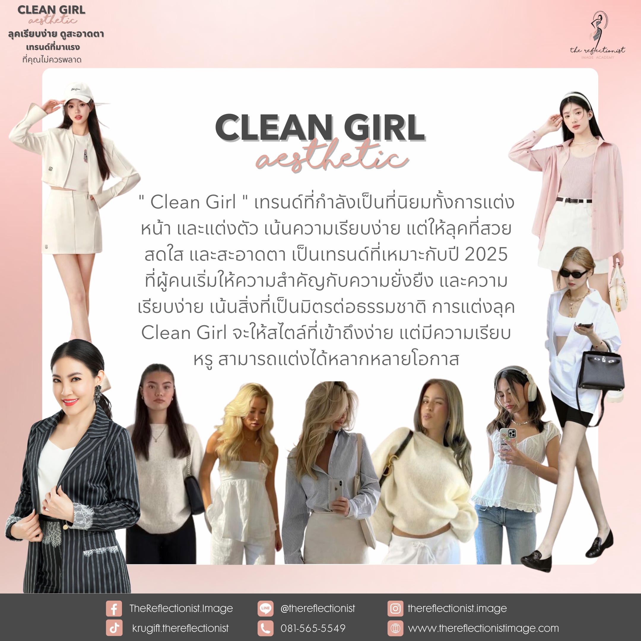 " Clean Girl " เทรนด์ที่กำลังเป็นที่นิยมทั้งการแต่งหน้า และแต่งตัว เน้นความเรียบง่าย แต่ให้ลุคที่สวย สดใส และสะอาดตา เป็นเทรนด์ที่เหมาะกับปี 2025 ที่ผู้คนเริ่มให้ความสำคัญกับความยั่งยืง และความเรียบง่าย เน้นสิ่งที่เป็นมิตรต่อธรรมชาติ การแต่งลุค Clean Girl จะให้สไตล์ที่เข้าถึงง่าย แต่มีความเรียบหรู สามารถแต่งได้หลากหลายโอกาส