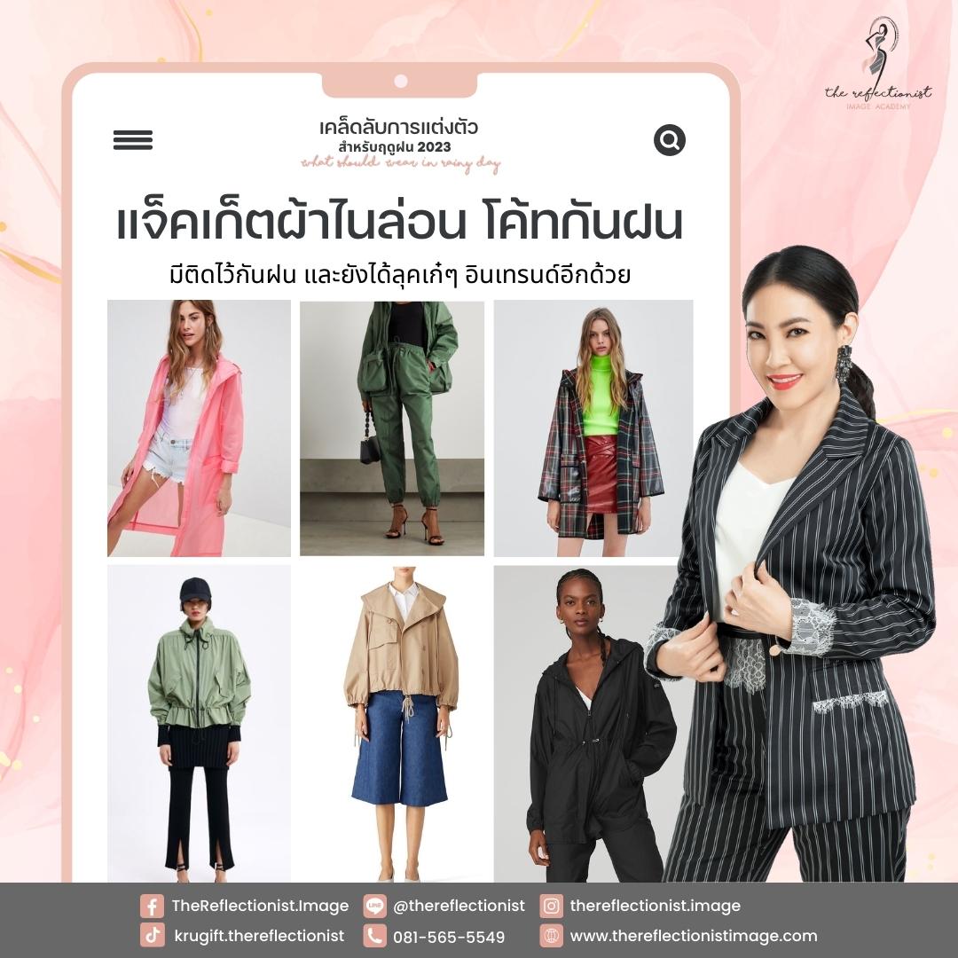 ช่วงนี้เสื้อแจ็คเก็ตผ้าไนล่อน กำลังอินเทรนด์ นำมาแมตช์ใส่คลุมให้ลุคเก๋ๆ แล้ว ยังเหมาะกับหน้าฝนอีกด้วย หรือจะพกเสื้อโค้ทกันฝนตัวสวยติดไว้ พร้อมใส่เป็นไอเท่มชิคๆ ที่นอกจากใช้ช่วยกันฝนแล้ว ยังช่วยกันหนาว เวลาคุณอยู่ในห้องแอร์ หรือกันลมที่มากับฝนได้ด้วยค่ะ