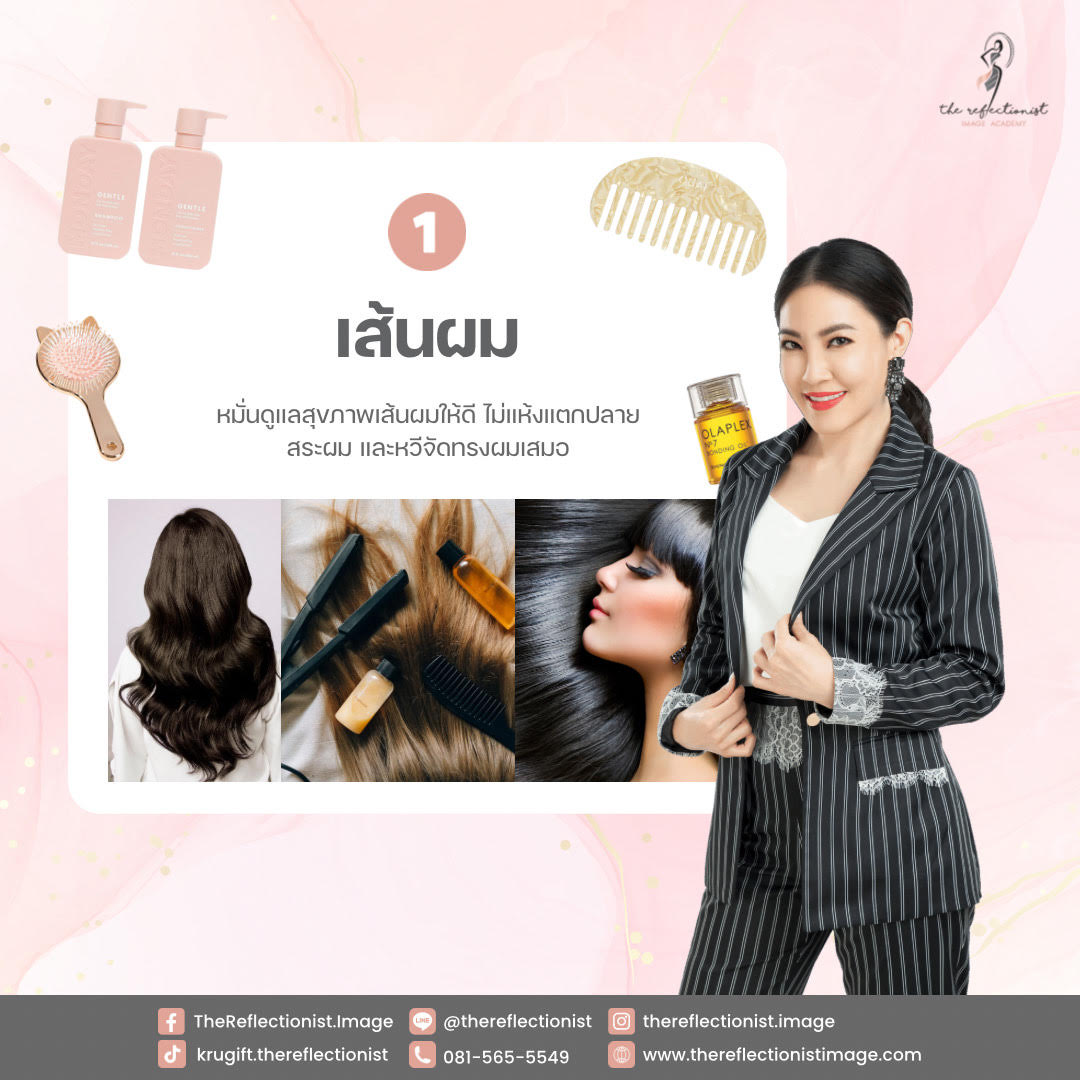 สงสัยกันไหมคะว่า ทำไมครูกิ๊ฟถึงอยากให้คุณดูแลใส่ใจ เส้นผมของคุณเองเป็นอย่างแรก เพราะเส้นผมที่ดูเงาสวย ไม่ชี้ฟู จะทำให้ภาพลักษณ์ภายนอกของคุณดูดีมากกว่าการปล่อยให้มีผมที่ชี้ฟูค่ะ และจะยิ่งส่งเสริมให้คุณดูดียิ่งขึ้นไปอีกถ้ามีสีผมที่เหมาะกับสีผิว และทรงผมที่เหมาะกับรูปหน้า และสไตล์ของคุณ จะทำให้ผู้พบเห็นรู้สึกว่าเราดูดีมากๆเลย แน่นอนค่ะ