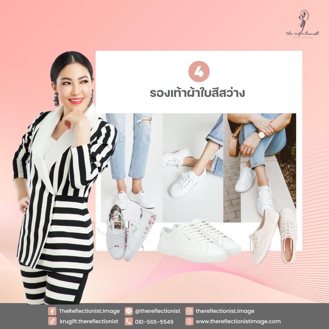 4. รองเท้าผ้าใบสีอ่อนสว่างเรียบๆ