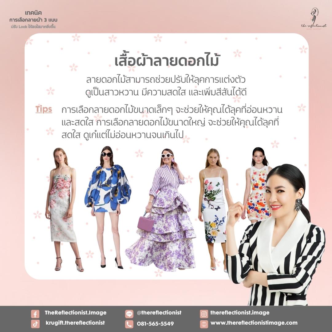 การเลือกลายดอกไม้มาใส่ถือเป็นลายที่ทุกคนจะนึกถึงเวลาที่ต้องการได้ลุคที่มีความเป็นสาวหวาน มีความสดใส หรือเพิ่มสีสันให้กับตัวเอง ซึ่งความแตกต่างของขนาดลายดอกไม้ส่งผลต่อลุคที่แตกต่างกัน