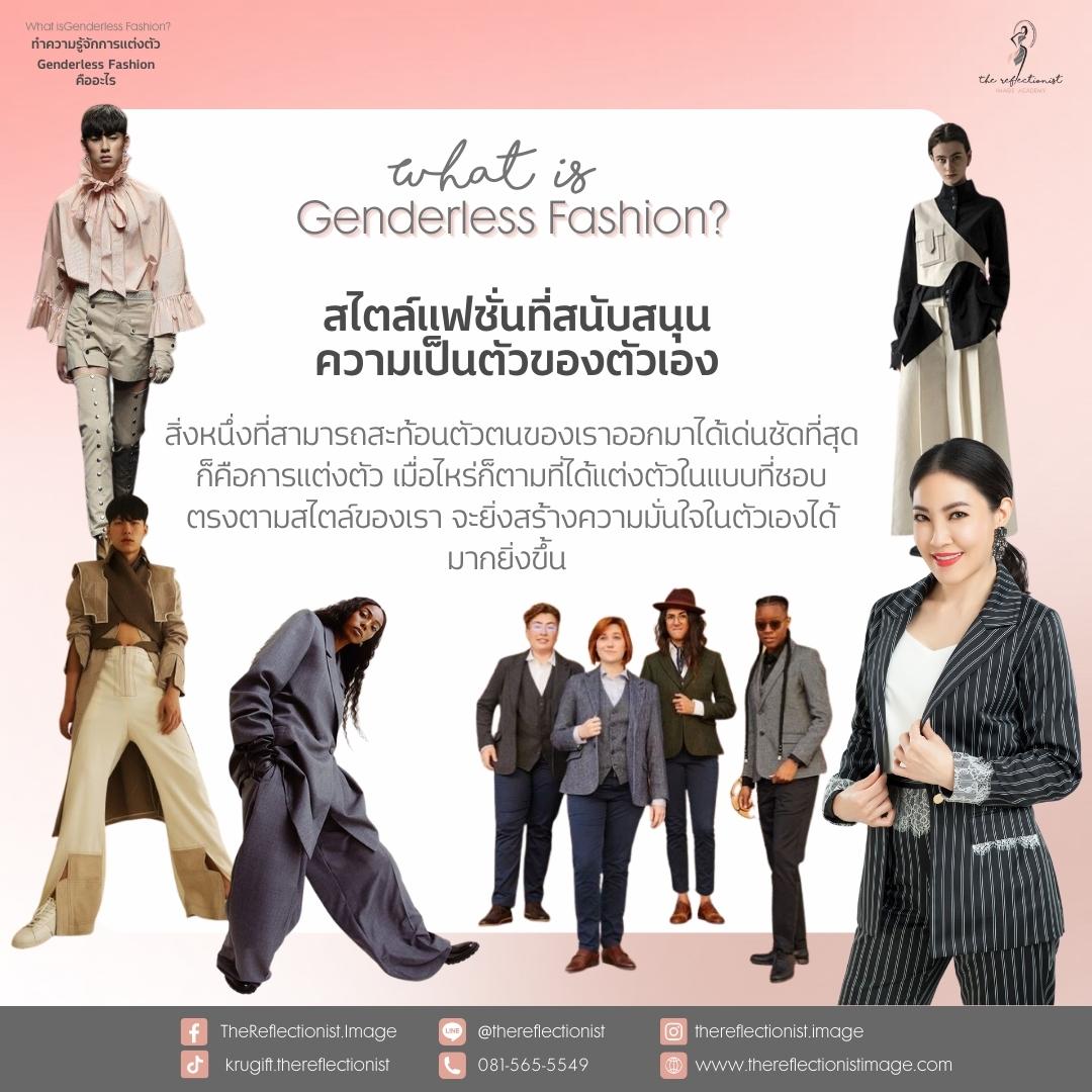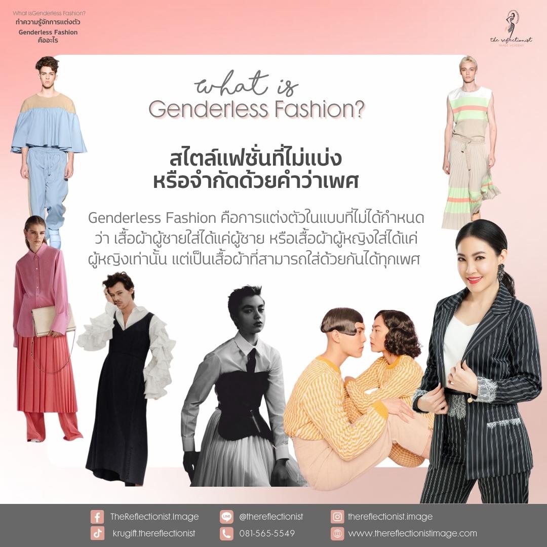 Genderless Fashion คือการแต่งตัวในแบบที่ไม่ได้กำหนดว่า เสื้อผ้าผู้ชายใส่ได้แค่ผู้ชาย หรือเสื้อผ้าผู้หญิงใส่ได้แค่ผู้หญิงเท่านั้น แต่เป็นเสื้อผ้าที่ทุกคนสามารถใส่ด้วยกันได้ทุกเพศ ไม่ว่าคุณจะเป็นเพศอะไร