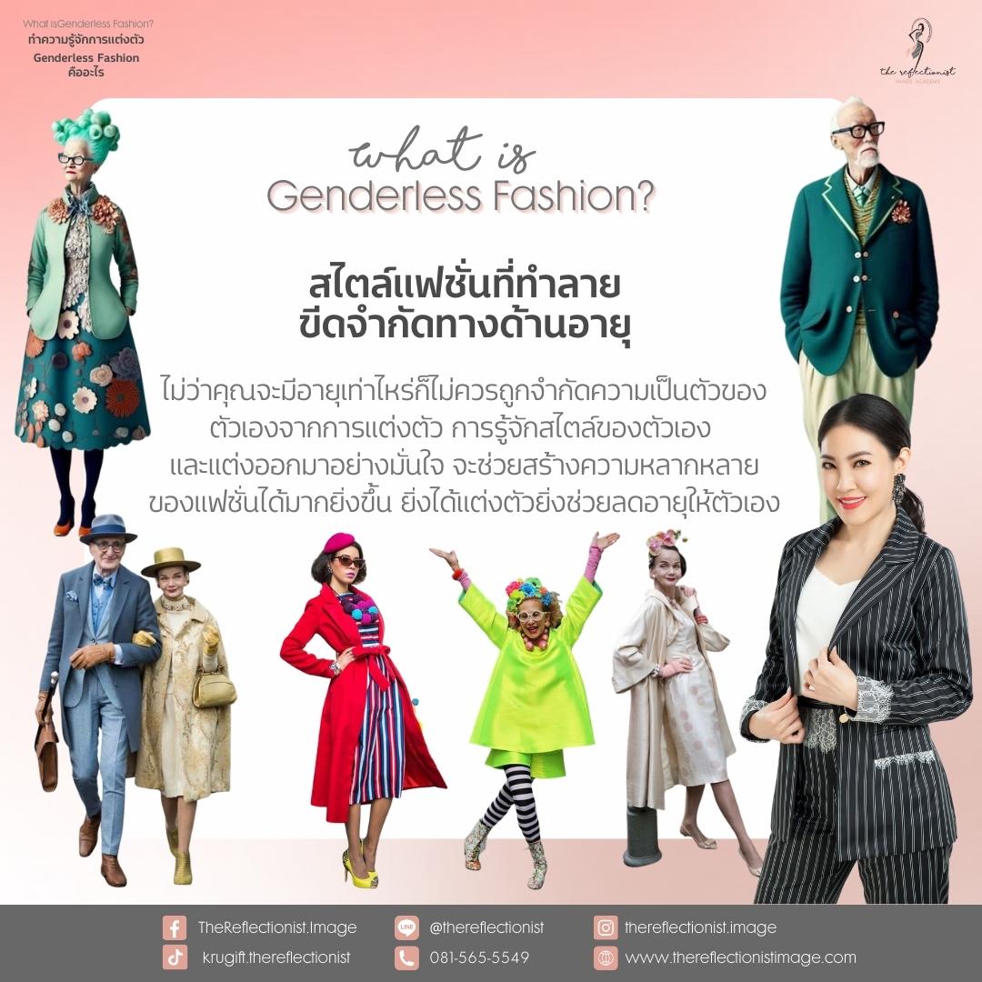 อีกหนึ่งความหมายของ Genderless Fashion ก็คือ แฟชั่นที่ทำลายขีดจำกัดด้านอายุของคุณเอง เพราะไม่ว่าคุณจะมีอายุเท่าไหร่ ก็ไม่ควรถูกจำกัดความเป็นตัวของตัวเองจากการแต่งตัว การรู้จักสไตล์ของตัวเอง และแต่งออกมาอย่างมั่นใจ จะช่วยสร้างความหลากหลายของแฟชั่นได้มากยิ่งขึ้น และนอกจากจะช่วยสร้างความมั่นใจจากการที่ได้เป็นตัวของตัวเองแล้ว การแต่งตัวยังช่วยลดอายุได้เช่นกันนะคะ